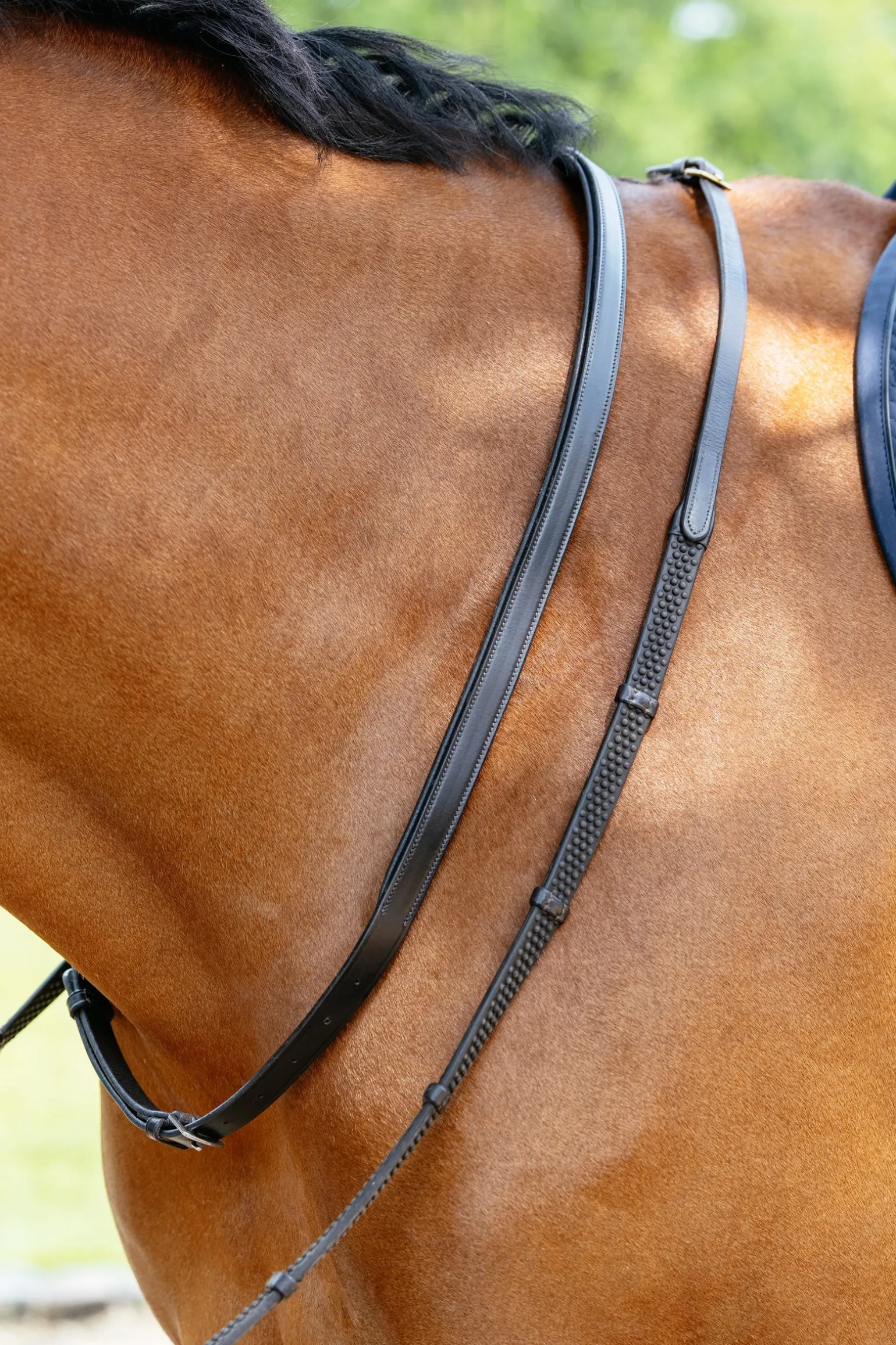 Zurück zu den Grundlagen – mit einem Halsriemen. Ideal, um dir im Sattel mehr Sicherheit zu geben – perfekt für unerfahrene Reiter, beim Springen oder beim Reiten junger oder unberechenbarer Pferde. Wenn du zum Halsriemen greifst, vermeidest du unnötigen Druck im Pferdemaul. Ein praktisches und sinnvolles Zubehör für deine Ausrüstung.