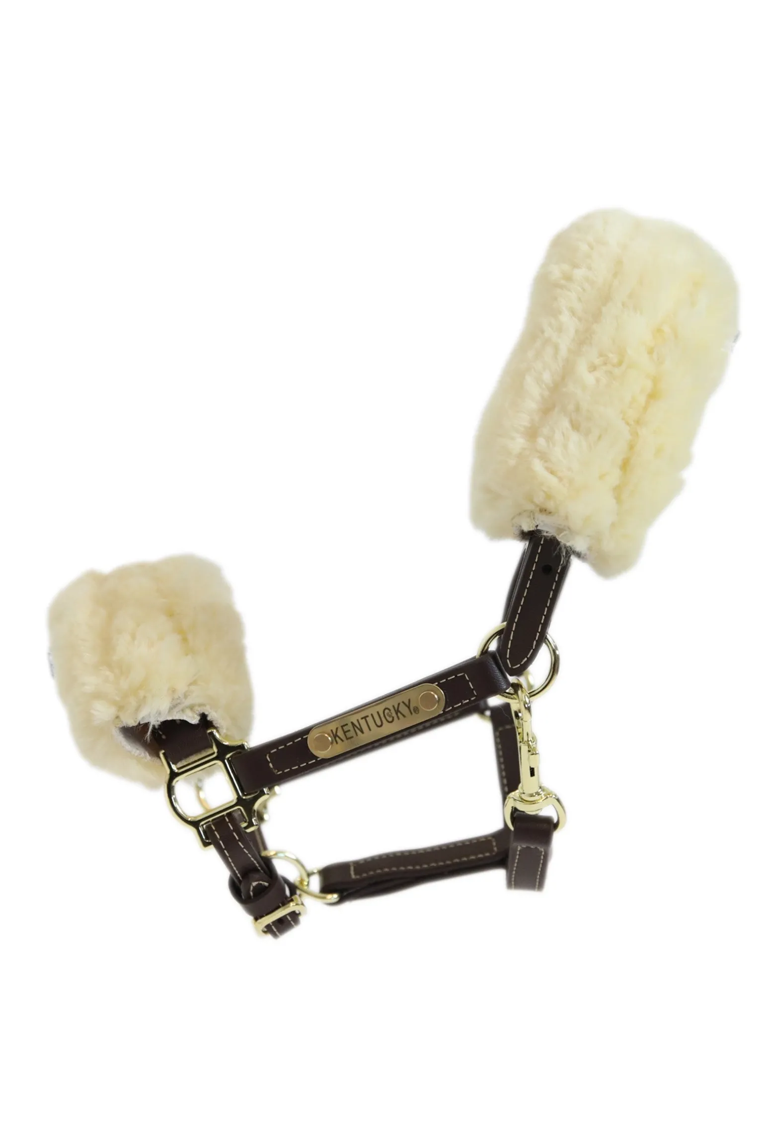 Das Kentucky Horsewear Lederhalfter Schaffell wird alle Pony-Liebhaber glücklich machen! Es besteht aus langlebigem und beständigem Kunstleder und hat zwei Teile aus Schaffell am Nasenriemen und am Nacken, die bei Bedarf entfernt werden können. Das Halfter ist sehr leicht, weich und bequem. Es vermeidet Druck und Scheuern am Kopf des Ponys. Ein Karabinerhaken nahe der Wange sorgt dafür, dass das Halfter leicht angelegt und abgenommen werden kann. Dieses Halfter aus künstlichem Material (100% tierfreundlich) ist auch sehr pflegeleicht, da es bei 30 ° in der Maschine gewaschen werden kann, kein Trockner.