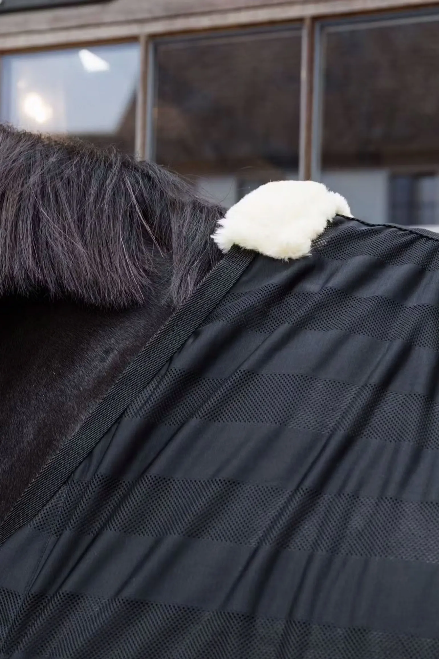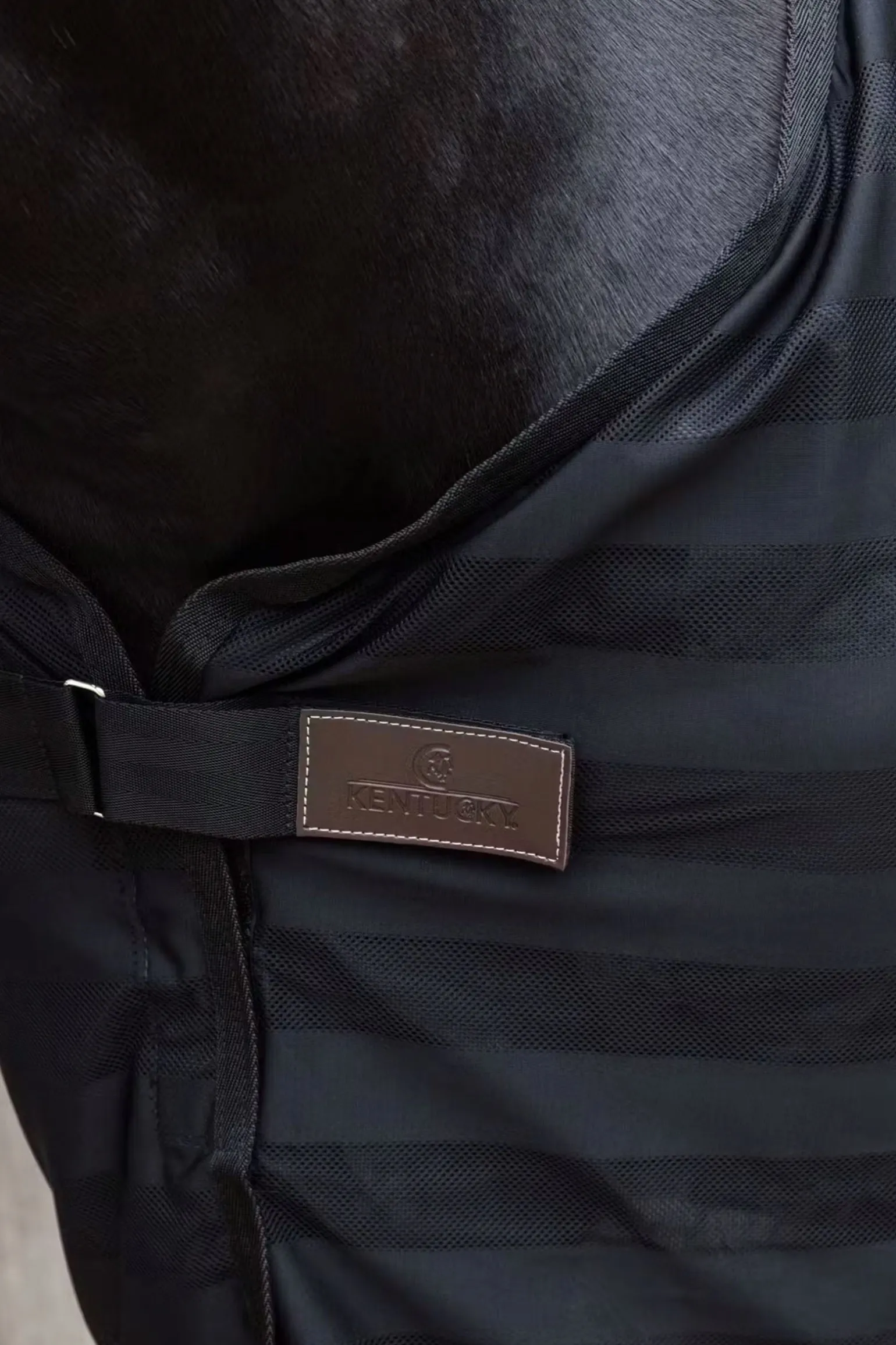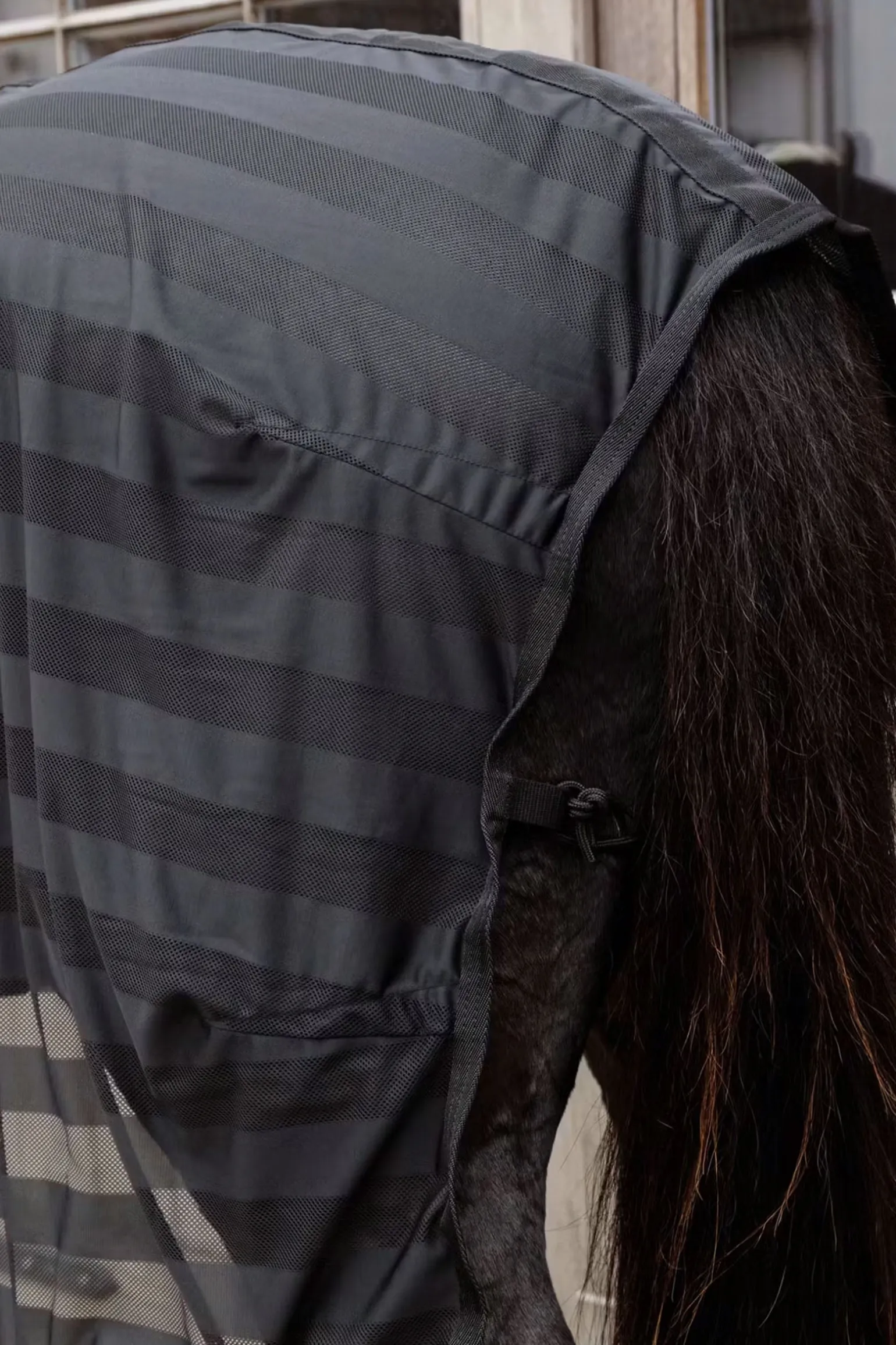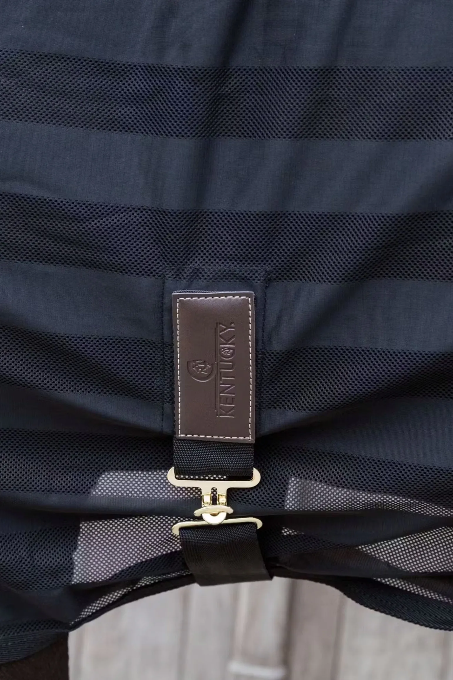 Die leichte Mesh Fliegendecke wurde speziell für Pferde mit empfindlicher Haut entwickelt, die im Stall besonderen Schutz vor Insekten benötigen. Sie ist extrem leicht und bietet effektiven Schutz vor Fliegen, ohne dein Pferd zu überhitzen. Das atmungsaktive Material sorgt dafür, dass dein Pferd eine frische Brise genießen kann. Kentucky Horsewears Engagement für Qualität und Nachhaltigkeit spiegelt sich in jeder Faser der Leichten Mesh Fliegendecke wider. Das Material ist hoch atmungsaktiv, leicht und langlebig. Es ermöglicht eine erfrischende Luftzirkulation und sorgt dafür, dass dein Pferd sich wohlfühlt und gleichzeitig vor Insekten geschützt ist. Die Fliegendecke ist anatomisch geformt, um eine perfekte Passform zu gewährleisten, und wurde so entworfen, dass sie sich während der Bewegung nicht verschiebt. Ein Bauchgurt hält die Decke sicher an Ort und Stelle.