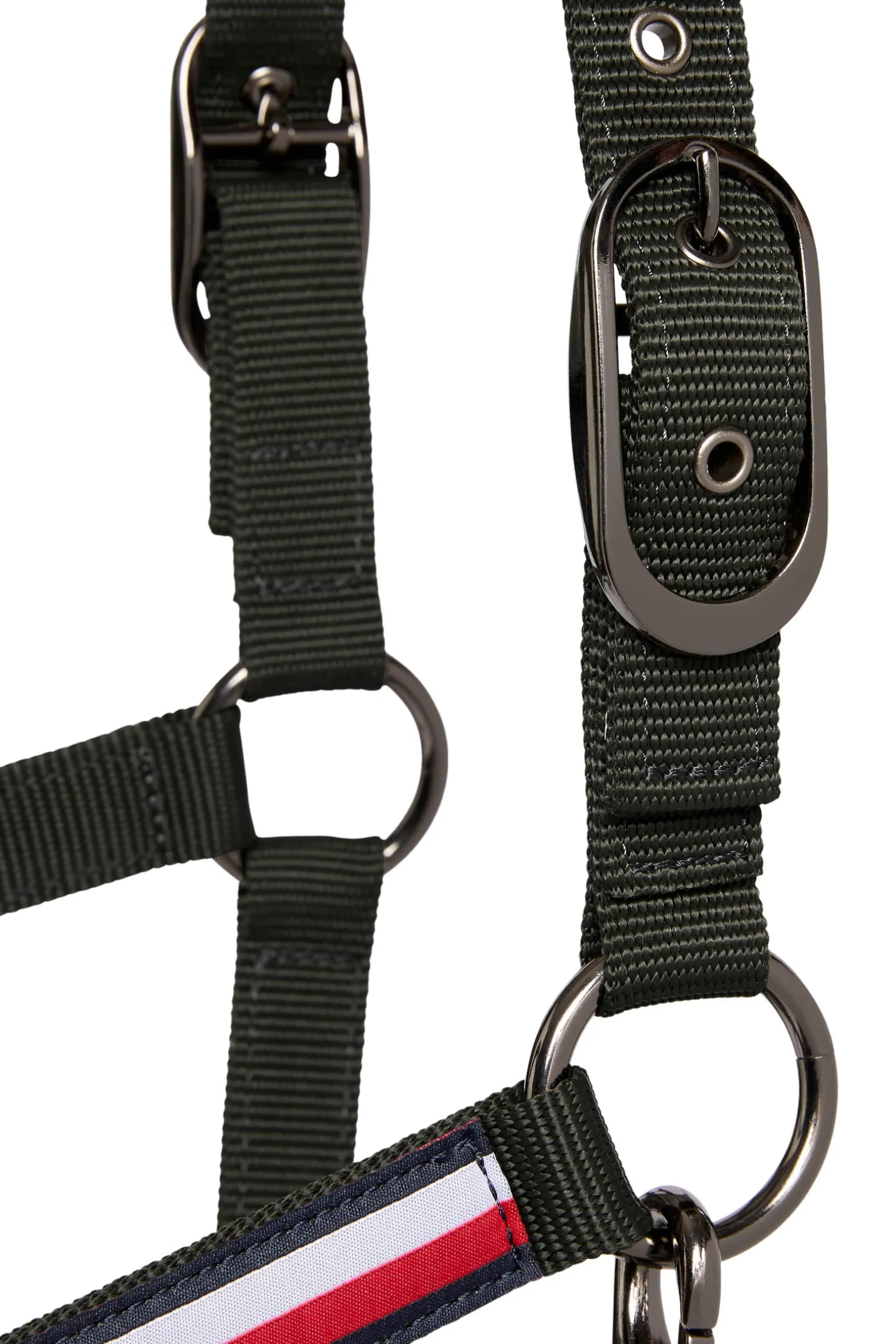 Das Tommy Hilfiger Equestrian Lincoln Halfter vereint Stil und Funktionalität für den täglichen Gebrauch. Mit dem ikonischen Tommy Hilfiger Logo und Global Stripe Branding verleiht es der Ausrüstung deines Pferdes eine elegante Note. Verstellbare Haken, Ringe und Schnallen sorgen für eine optimale Passform, während hochwertige Beschläge Haltbarkeit und Sicherheit gewährleisten. Perfekt für Training und Weidegang.