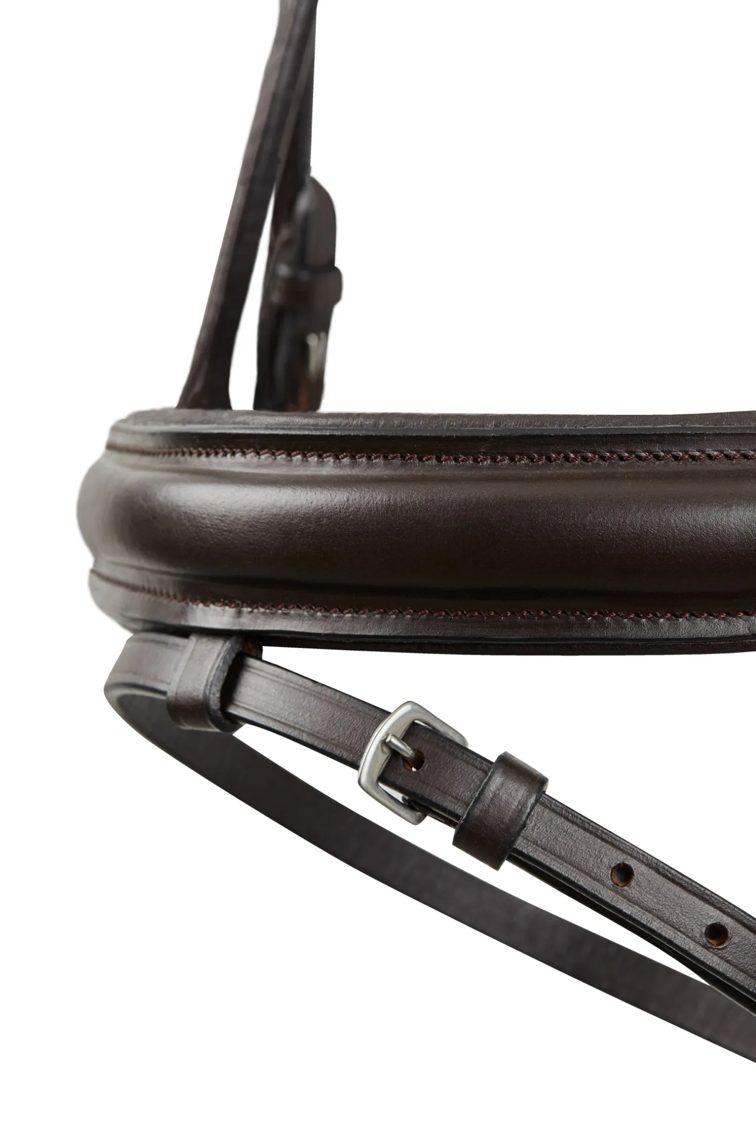 Die Horze Lockhart Trense ist anatomisch geformt, damit der empfindliche Kopf deines Pferdes keine unangenehmen Druckstellen hat. Die verstellbaren Schnallen sorgen für den perfekten Sitz. Der abnehmbare Stirnriemen ist leicht zu wechseln. Das weiche Leder ist sehr langlebig und bietet größten Komfort.