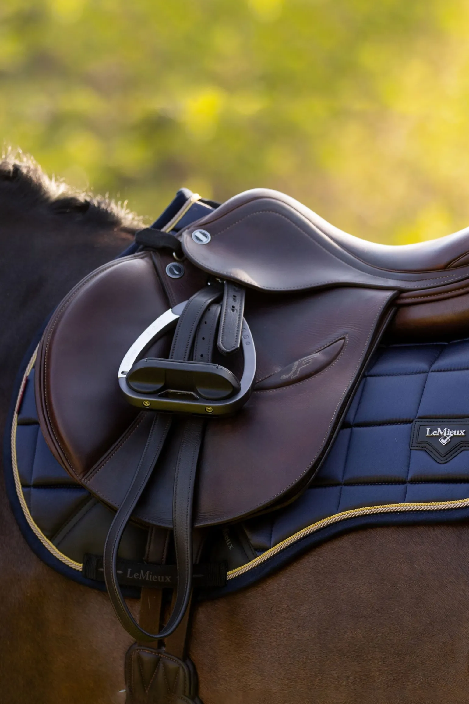 Als eines der stilvollsten Sattelpads von LeMieux verbindet die Loire Collection Eleganz und Raffinesse mit technischer Weiterentwicklung. Der gewebte Satin-Stoff der Loire Collection ist mit einer Bambusmischung gefüttert, die besonders weich und atmungsaktiv ist. Das Bambusmaterial ist temperaturausgleichend und feuchtigkeitsableitend, sodass dein Pferd unter dem Sattel kühl bleibt. Die hohe Widerristform reduziert den Druck und verbessert die Passform des Sattels. Die elastischen Sattelgurte werden an der D-Ring-Befestigung schmaler, sodass Platz für zusätzliches Zubehör bleibt.