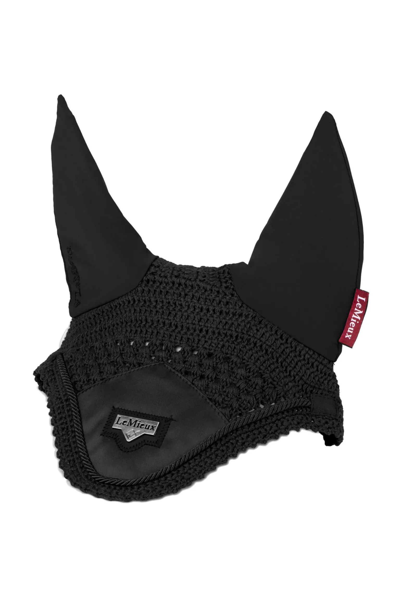Wunderschön gearbeitet, aus dreifach gestrickter Häkelarbeit mit luxuriösem Satin vorn und Ohren aus Softstretch-Lycra.
