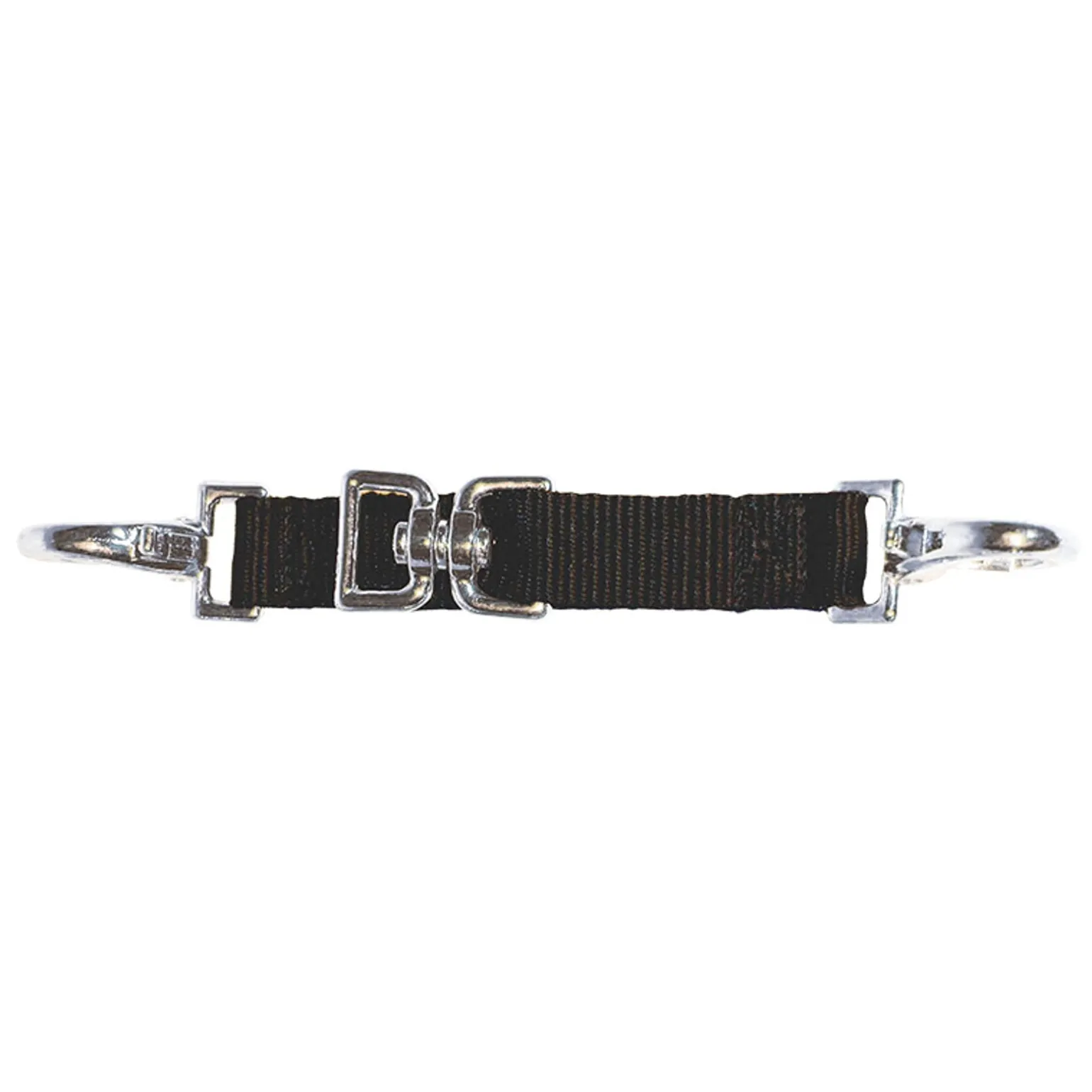 Ein Longiersteg wird in beide Gebissringe geschnallt. Dabei wird die Longe in den Wirbel in der Mitte gehängt. Longierstege dienen zur gleichmäßigen Druckverteilung auf beiden Gebissringe.