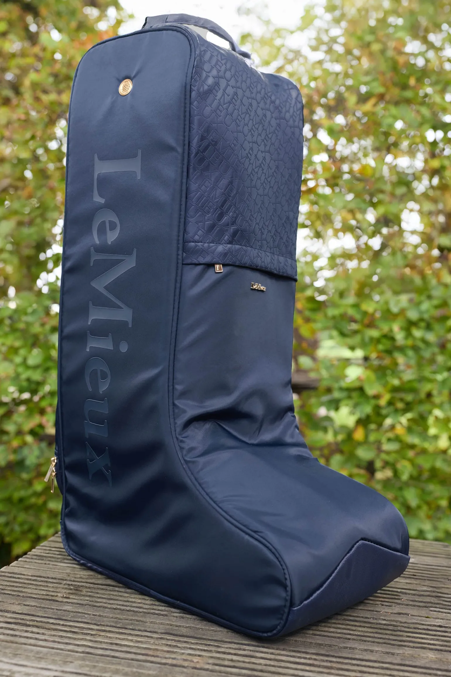 Luxuriöse Stiefeltasche, perfekt zur Aufbewahrung im Hof oder für Reisen zu Pferdeshows und Veranstaltungen. Hält deine Stiefel sauber und geschützt. Super weiches, gestepptes Kunstfellfutter und Trennwand mit abwischbaren Kunstlederplatten. Geformt, um sich eng um deine Stiefel zu schmiegen, mit großem Doppelreißverschluss für einfachen Zugang. Abnehmbarer Schultergurt und bequemer gerollter Kunstledergriff.