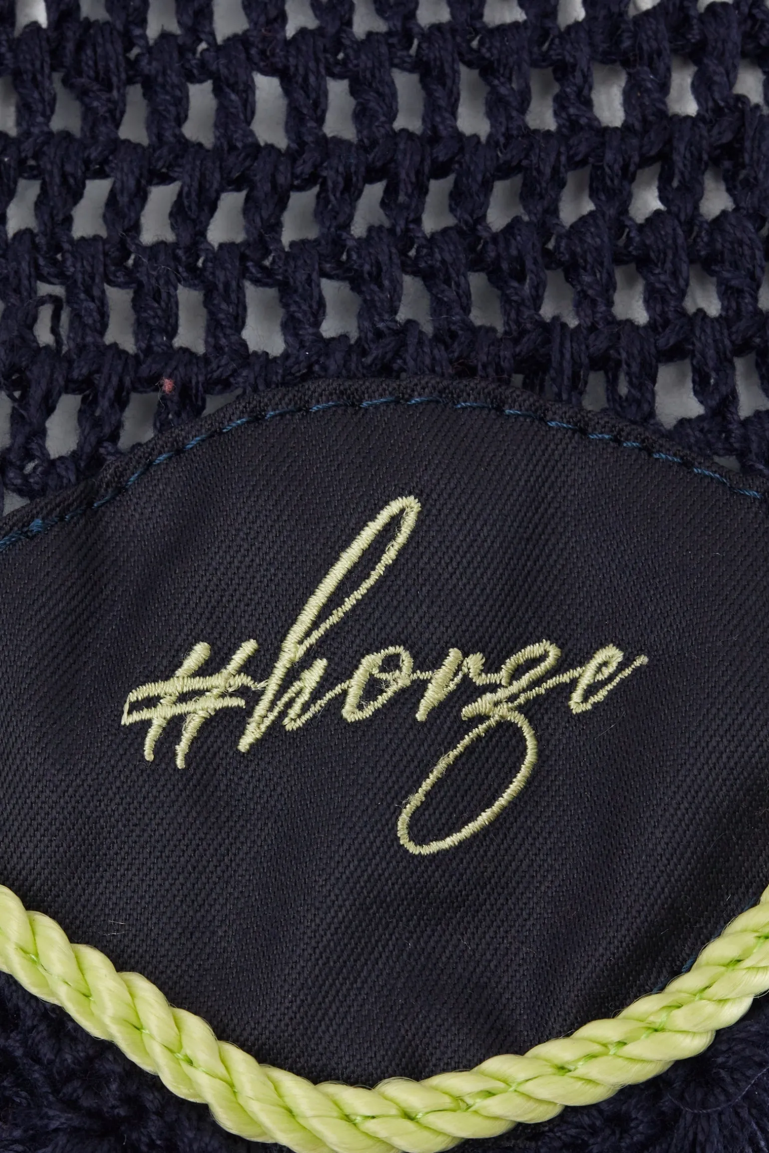 Klassisches gehäkeltes Hauptteil mit #Horze-Stickerei auf dem Schild. Der dehnbare Stoff um die Ohren erhöht die Passform und den Tragekomfort.