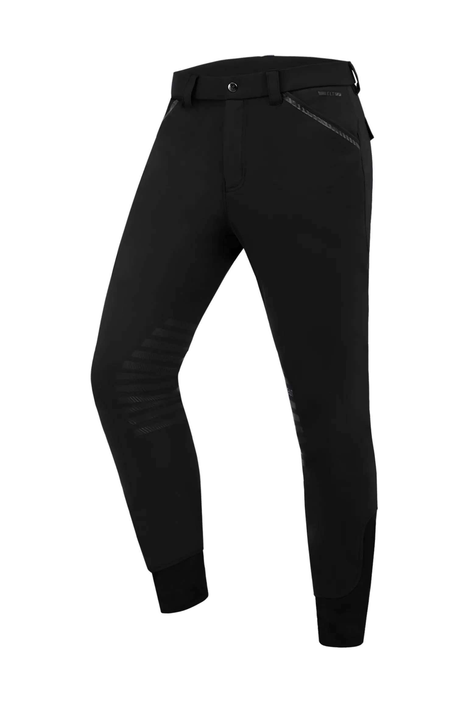 Erlebe ultimativen Komfort und Funktionalität mit dieser Reithose. Mit einer Smartphone-Tasche und einem Silikon-Kniebesatz für optimale Leistung gefertigt, besteht sie aus hochelastischem, formstabilem und atmungsaktivem Stoff mit weicher Innenseite. Die Eingrifftaschen mit Carbon-Tape-Details vorne und die aufgesetzten Pattentaschen mit Knopf hinten verleihen Stil und Praktikabilität. Elastische Beinabschlüsse sorgen für perfekten Sitz, während das E·L·T Logo in Carbon-Optik das Design vorne und hinten akzentuiert.