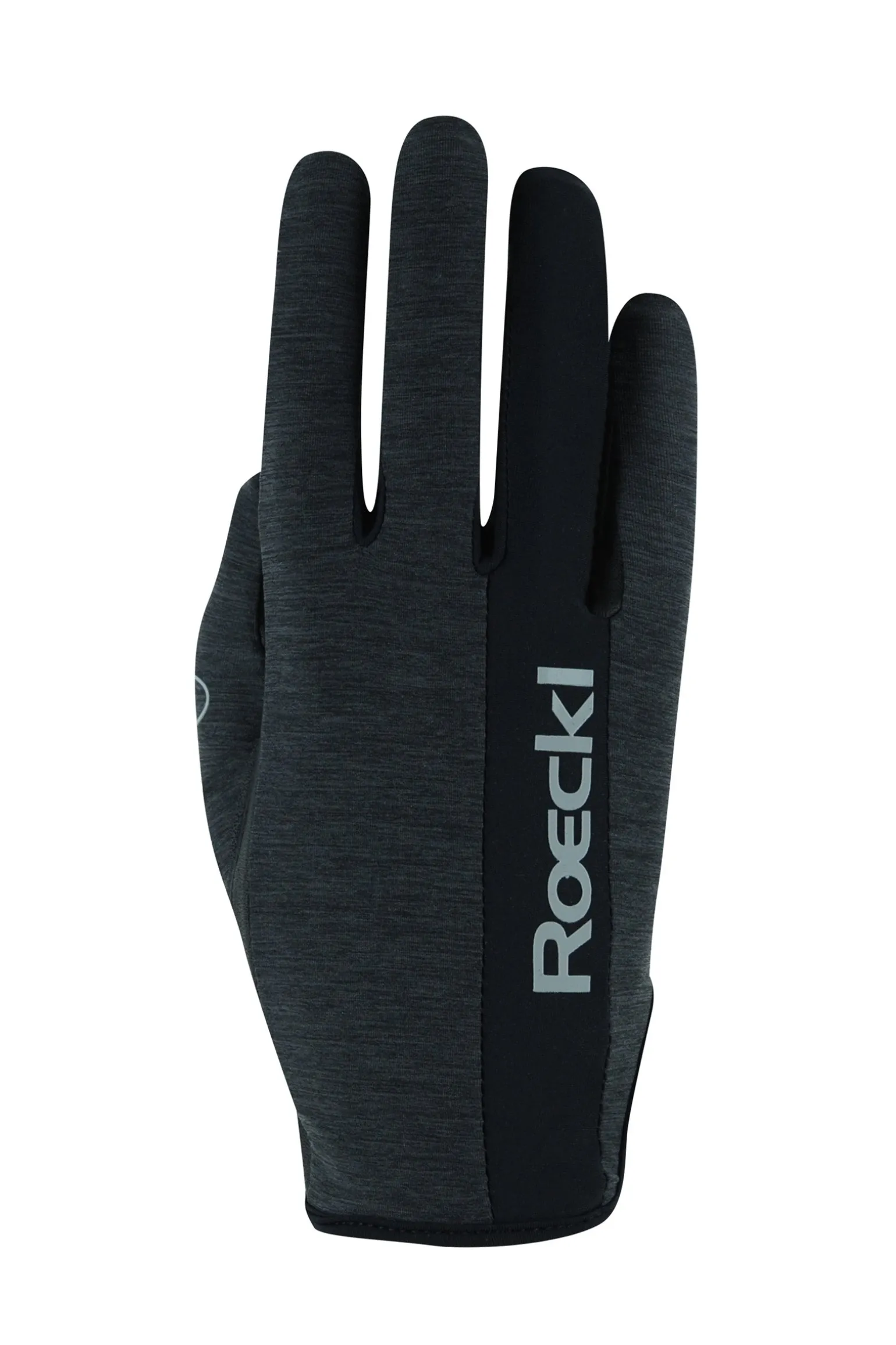 Was beim ROECKL Unisex-Reithandschuh MANNHEIM als Erstes auffällt, ist die Oberhand aus einem hochwertigen italienischen Lycra. Das Material begeistert nicht nur mit seiner komplexen Melange-Optik, sondern sorgt durch seine stretchige Qualität und Atmungsaktivität dafür, dass der Handschuh sitzt wie eine zweite Haut und schnell trocknet. Apropos Sitz: Die durchdachte Schlupfhandkonstruktion erleichtert das An- und Ausziehen. Für sicheren und zuverlässigen Halt am Zügel und damit genaue und feine Zügelhilfen hat ROECKL an der Innenhand ein softes und griffiges PU-Material verarbeitet. All das macht den MANNHEIM zum perfekten modischen Freizeitreithandschuh, der im Sommereinsatz am Stall und zu Pferde zur Hochform aufläuft. Und einer, der durch ein prägnantes ROECKL Logo in Verlängerung des farblich abgesetzten Ringfingers am Handrücken auch mit einem coolen Design aufwartet. Clever und schick außerdem: das gedruckte ROECKL Händchen-Logo auf dem Zügeldaumen als visuelle Hilfestellung, damit man die aufgestellte Zügelfaust – und damit die korrekte Zügelführung – jederzeit kontrollieren kann.