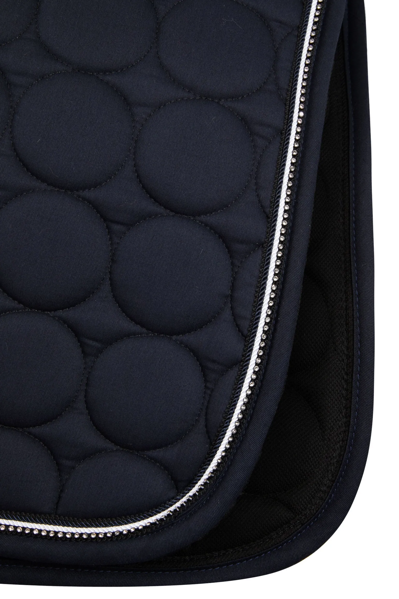Die Horze Marquess Schabracke ist mit schnelltrocknendem Futter ausgestattet, das Feuchtigkeit effektiv ableitet. Die weiche Polsterung sorgt für eine bequeme Passform. Der Rand ist mit glitzernder Kordel und Kristallen besetzt und sorgt für die richtige Dosis an Glitzer. Kombiniere sie mit der Marquess Fliegenhaube (#22924) für einen kompletten Look.