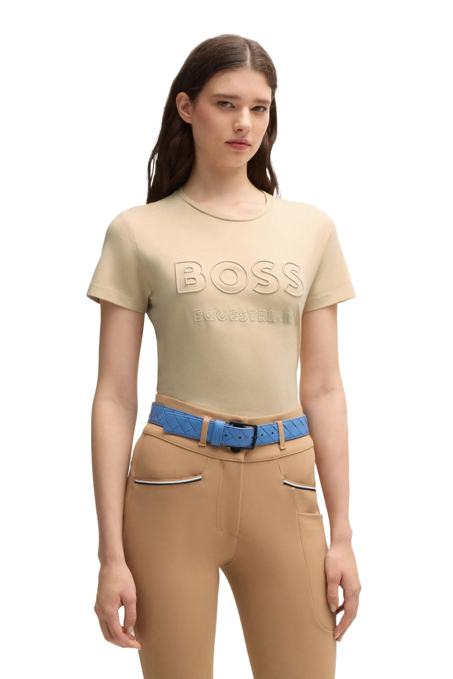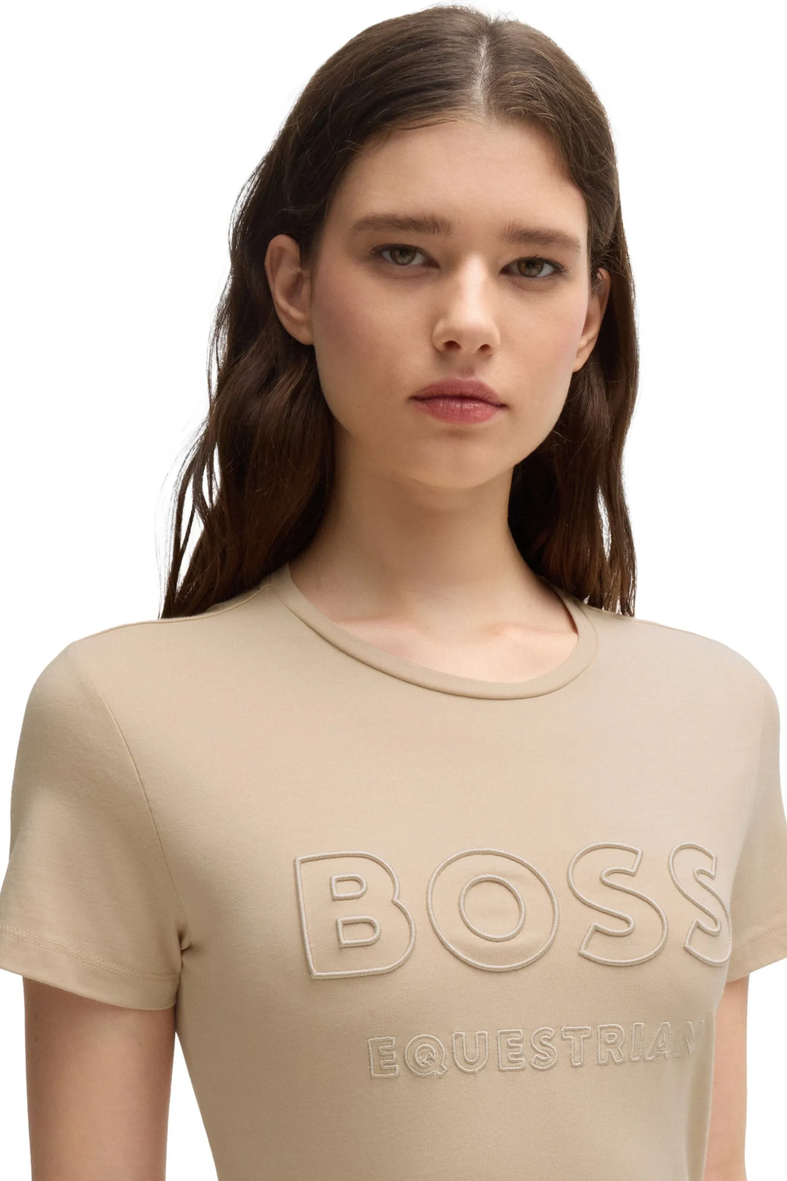 Kurzärmeliges T-Shirt mit in Ton-in-Ton gesticktem Schriftzug. Dieser Klassiker kann wirklich mit allem kombiniert werden, sogar mit einer schicken Hose als Arbeitsoutfit.