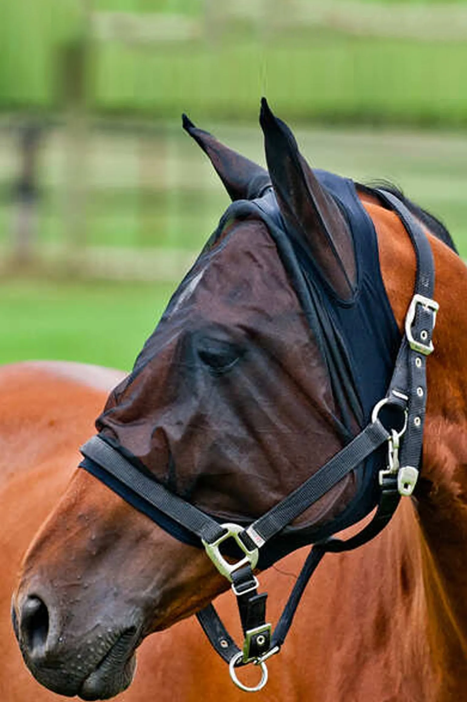 Entscheiden Sie sich für diese gut sitzende Maske aus weichem Lycra Gewebe um eine perfekte Passform zu gewährleisten damit Sie Ihre Ritte im Sommer genießen können, obwohl Fliegen um Sie herumschwirren. Der durchsichtige und transparente Fliegenschutz dieser Maske wird nicht das Sichtfeld Ihres Pferdes beim Reiten beeinträchtigen. Wenn Ihr Pferd diese Maske trägt werden Sie einen sehr viel sicherere und ruhigeren Ritt haben, da Ihr Pferd nicht permanent mit dem Kopf nach den ekelhaften, schwärmenden Insekten schlagen wird. Die Maske kann über oder unter dem Zaumzeug angelegt werden. Das superweiche, sich anpassende Micromesh reibt nicht und hilft die Maske kühl zu halten und die einzigartige Doppel-Nähte ermöglichen Platz und hält die Maske von Augen und Schläfen Ihres Pferdes fern. Das Mesh um die Ohren und Augen ist gleichzeitig das Beste für Ihr Pferd in Sachen Komfort und Sichtverhältnisse.