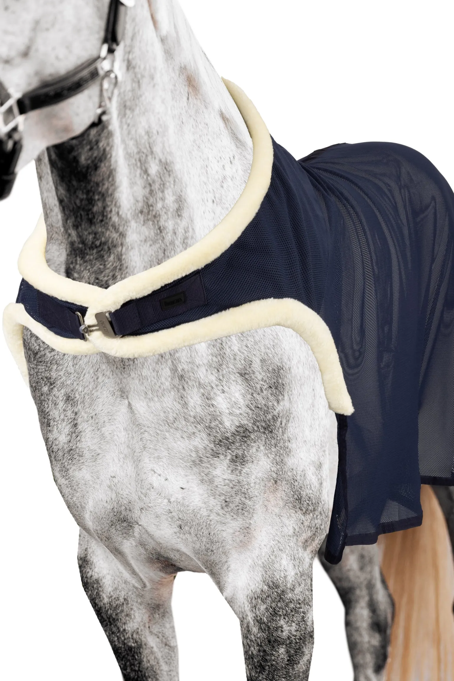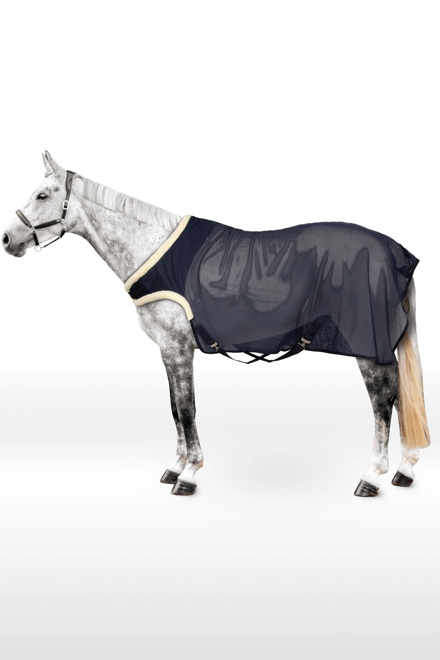 Diese Führanlagendecke wurde speziell entwickelt, um deinem Pferd während des Trainings in der Führanlage optimalen Komfort zu bieten. Der großzügige Schulterbereich ist ausgeschnitten, um maximale Bewegungsfreiheit und eine uneingeschränkte Schrittlänge zu ermöglichen. Die Decke wird mit einem einzelnen Bauchgurt vorne sicher verschlossen und verfügt über überkreuzte Gurte sowie einen Schweifriemen für optimalen Halt. Der Hals- und Schulterbereich ist mit weichem Kunstfell gefüttert, um Scheuerstellen zu vermeiden. Eine funktionale und atmungsaktive Wahl für das tägliche Training.