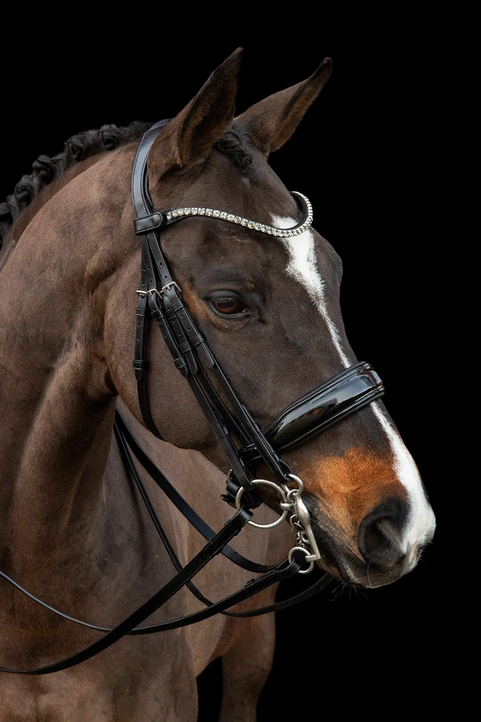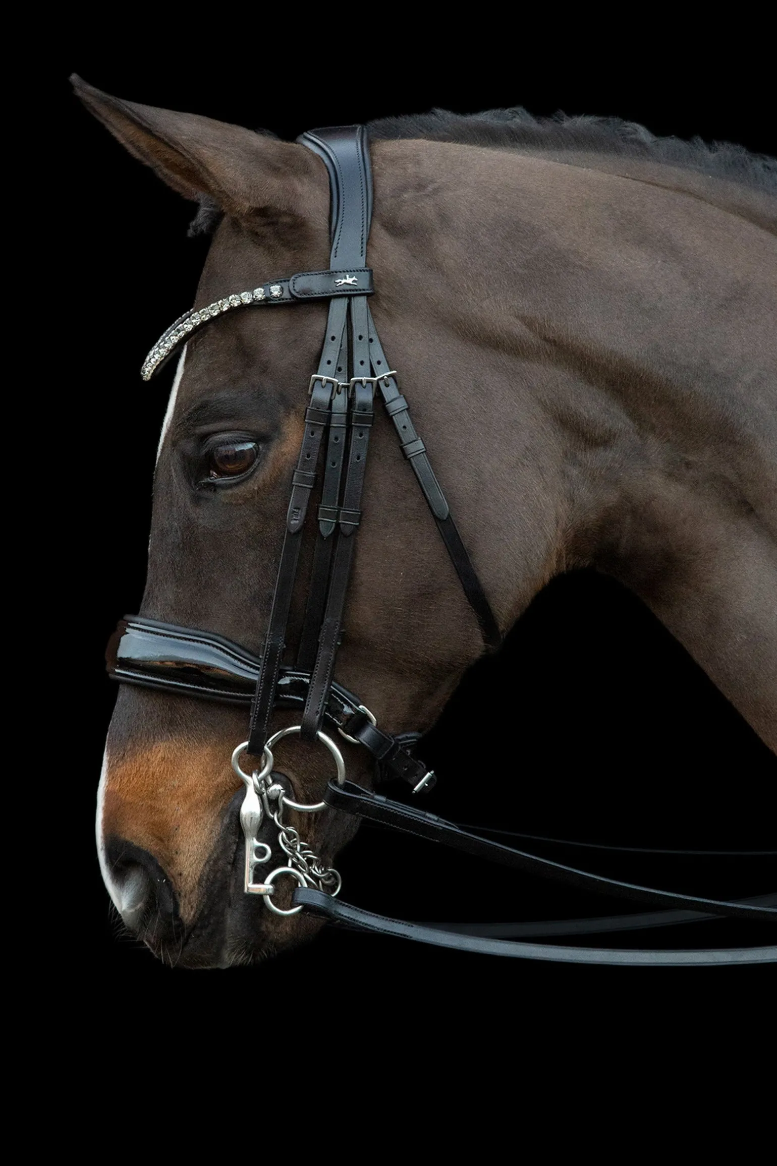 Die „Milazzo“ Premium-Dressurkandare lässt keine Wünsche offen. Mit dem anatomischen Genickstück wird sich dein Pferd sowohl im Training als auch im Wettkampf rundum wohlfühlen. Die Kandare aus hochwertigem, pflanzlich gegerbtem Leder überzeugt optisch mit ihrem Nasenriemen aus Lack und dem schmalen Stirnband mit extra großen Kristallen.