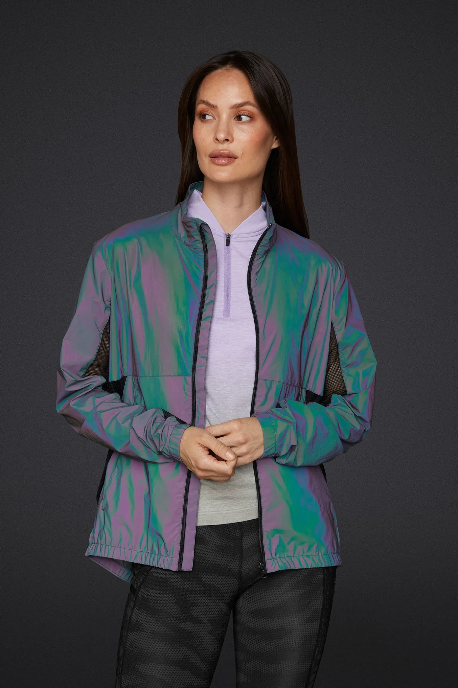 Leichte, reflektierende Jacke. Mesh-Ventilationsabschnitte an der Rückenpasse, an der Seite und am Ärmel.