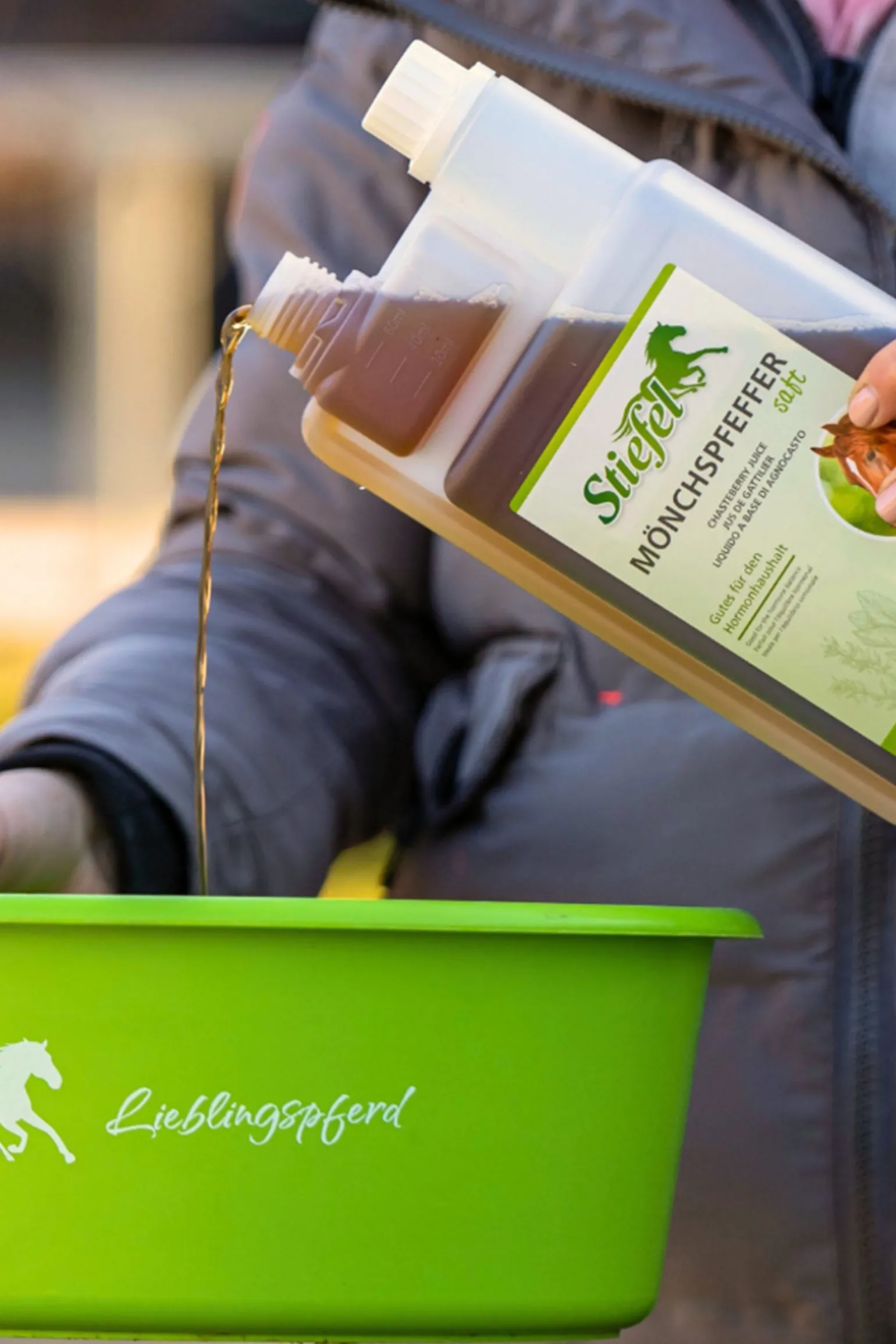 Stiefel Mönchspfeffersaft ist ein Kräutersaft ohne künstliche Aromastoffe zur Unterstützung eines ausgeglichenen Hormonhaushaltes. Stiefel Mönchspfeffersaft kann die Fruchtbarkeit positiv beeinflussen. Stiefel Kräutersäfte sind vegan, ohne Zuckerzusatz, ohne Farbstoffe, ohne künstliche Aromastoffe, made in Germany. Fütterungshinweis: Großpferde (600 kg KGW) 70 ml / tägl., Kleinpferde 35 ml / tägl. Tagesdosis kann auf zwei Portionen pro Tag aufgeteilt werden. Fütterungsdauer: Mind. 14 Tage. Fütterungsdauer von bis zu 8 Wochen empfehlenswert. Hinweis: Mönchspfeffer nicht während der Trächtigkeit füttern, nach der Bedeckung absetzen!