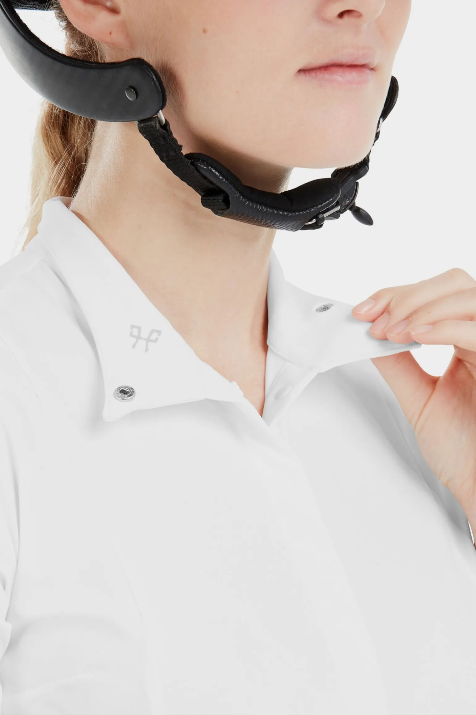 Ein elegantes Shirt, das für den Sport gemacht wurde und das du zu all deinen Wettbewerben mitnehmen möchtest! Wie das Monica Shirt mit langen Ärmeln erfüllt auch das Monica Shirt mit kurzen Ärmeln alle Wettbewerbsanforderungen. Mit ergonomischen Ausschnitten passt sich das Shirt perfekt den Bewegungen des Körpers an. Hergestellt aus 4-Wege-Stretchmaterial und mit unserer UV-Block-Technologie bietet das Shirt Komfort und Schutz. Die hoch atmungsaktive, mikroperforierte Zone im Rücken leitet Wärme während intensiver Anstrengung ab. Der Ausschnitt wurde speziell so designt, dass er den Wettbewerbsanforderungen entspricht. Die Höhe ist perfekt für die Jagd und das Reiten. Und weil eine der Hauptwerte von Horse Pilot die Umweltverantwortung ist, ist der Stoff mit OEKO-TEX® Standard 100 zertifiziert.