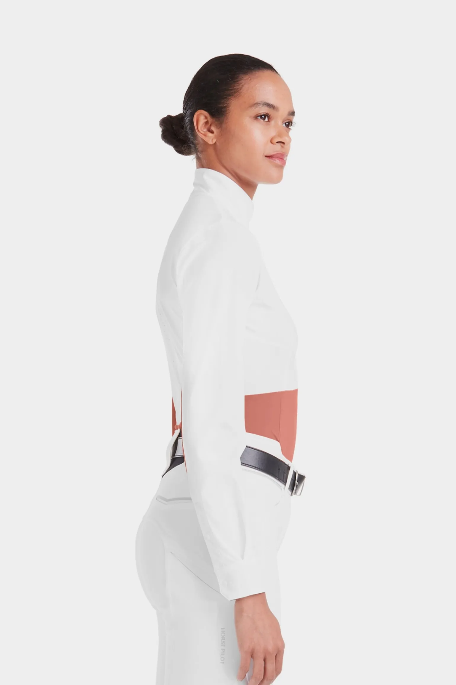 Mit seinen ergonomischen Ausschnitten und dem atmungsaktiven Bi-Stretch-Material bietet das Monica-Hemd Komfort und optimale Bewegungsfreiheit zugleich. Der erhöhte Kragen ermöglicht eine Verwendung für Disziplinen wie Hunter.