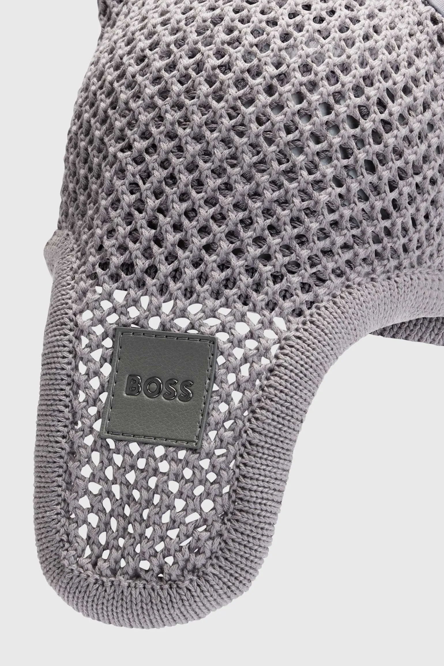 Gehäkelte Fliegenmütze im modischen Look mit BOSS Logo-Patch aus Kunstleder.