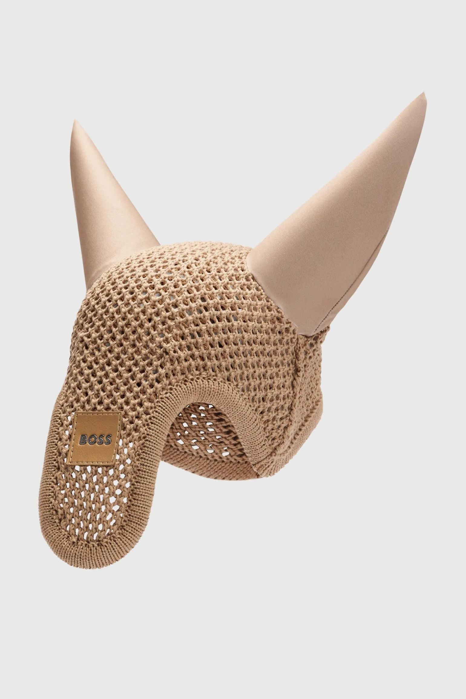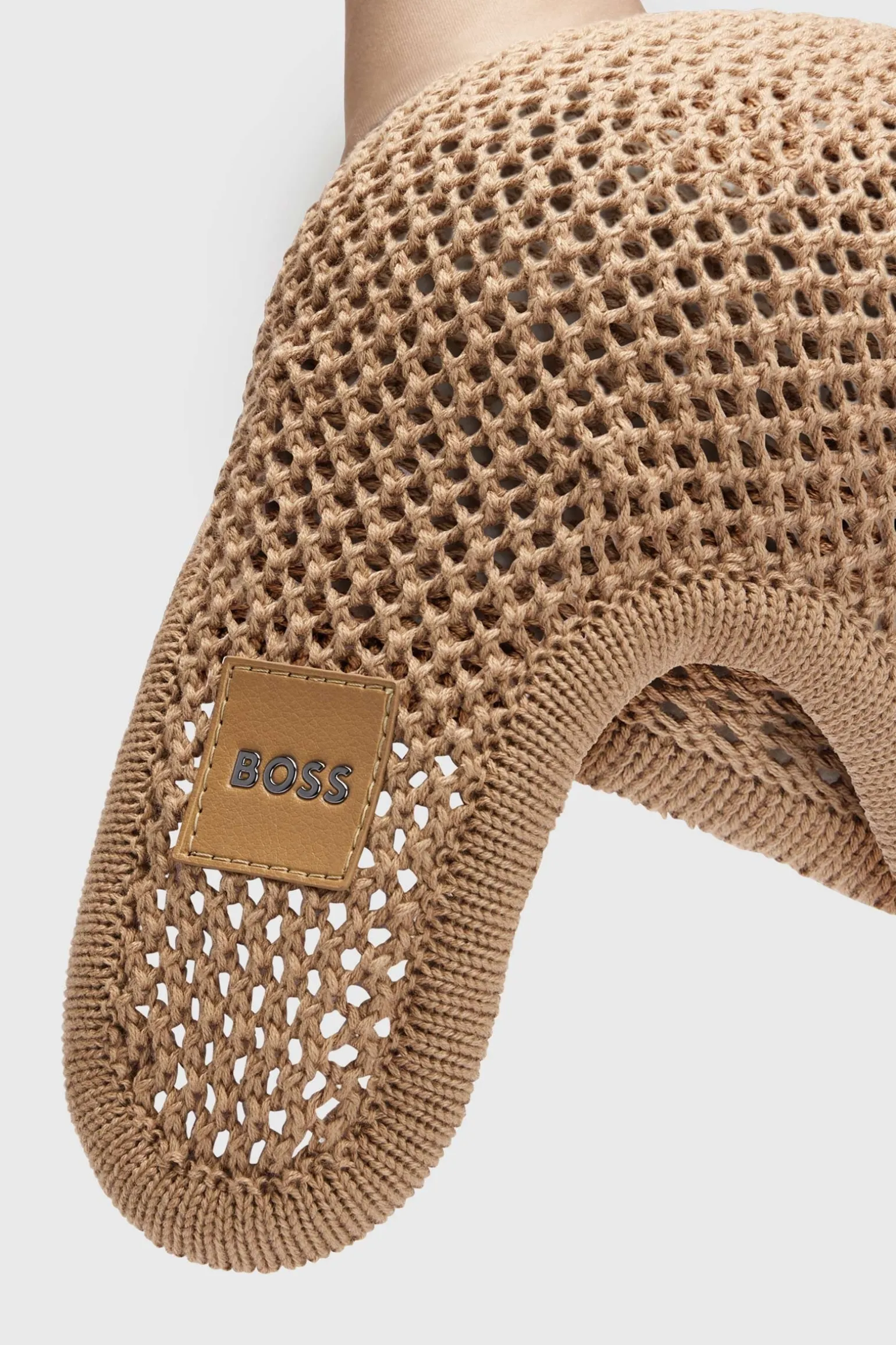 Gehäkelte Fliegenmütze im modischen Look mit BOSS Logo-Patch aus Kunstleder.