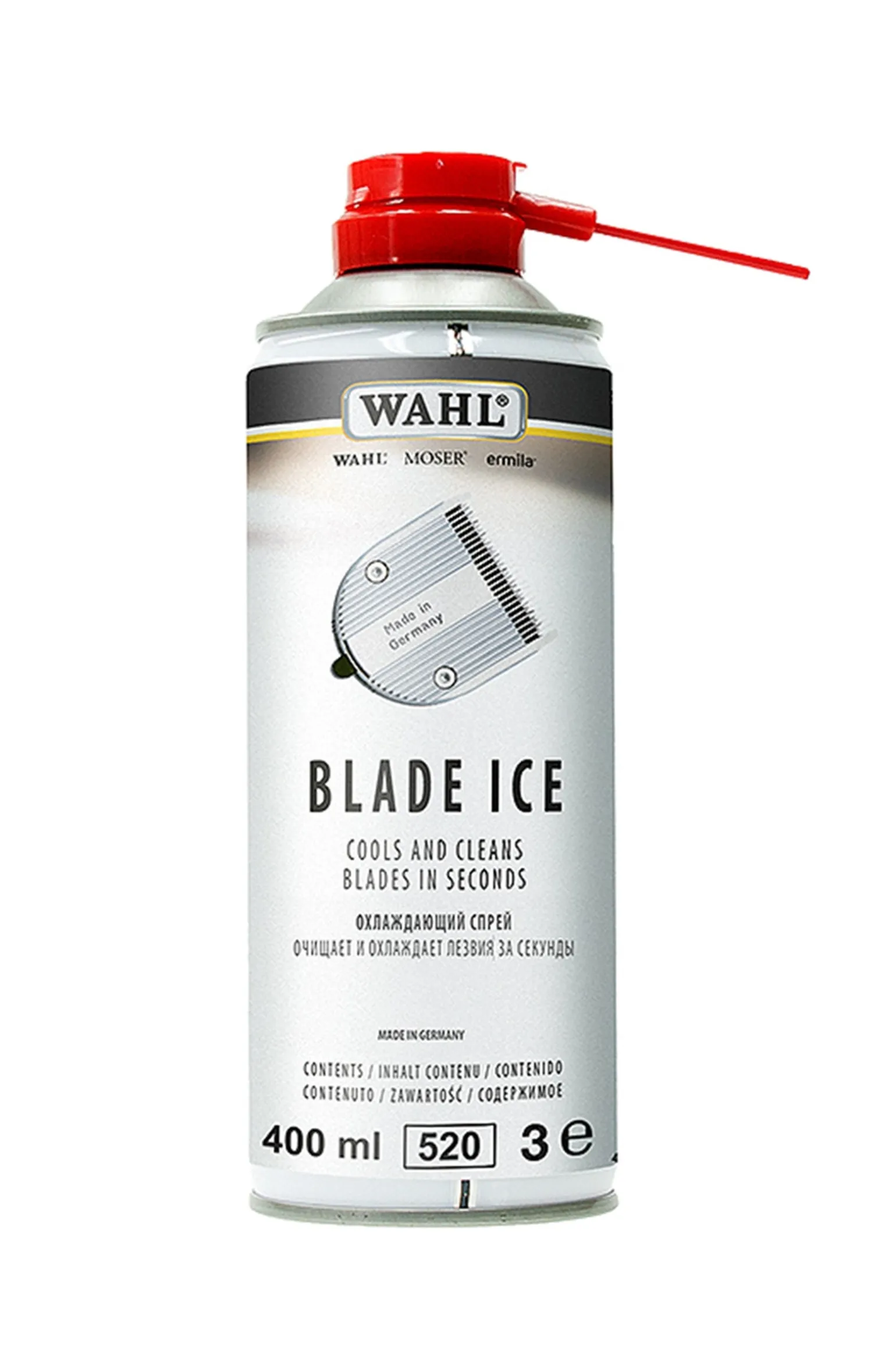 Hocheffektives 4-in-1 Spray für Schneidsatzpflege, ideal während der Schur, da der Schneidsatz alle 5-10min geölt werden soll.