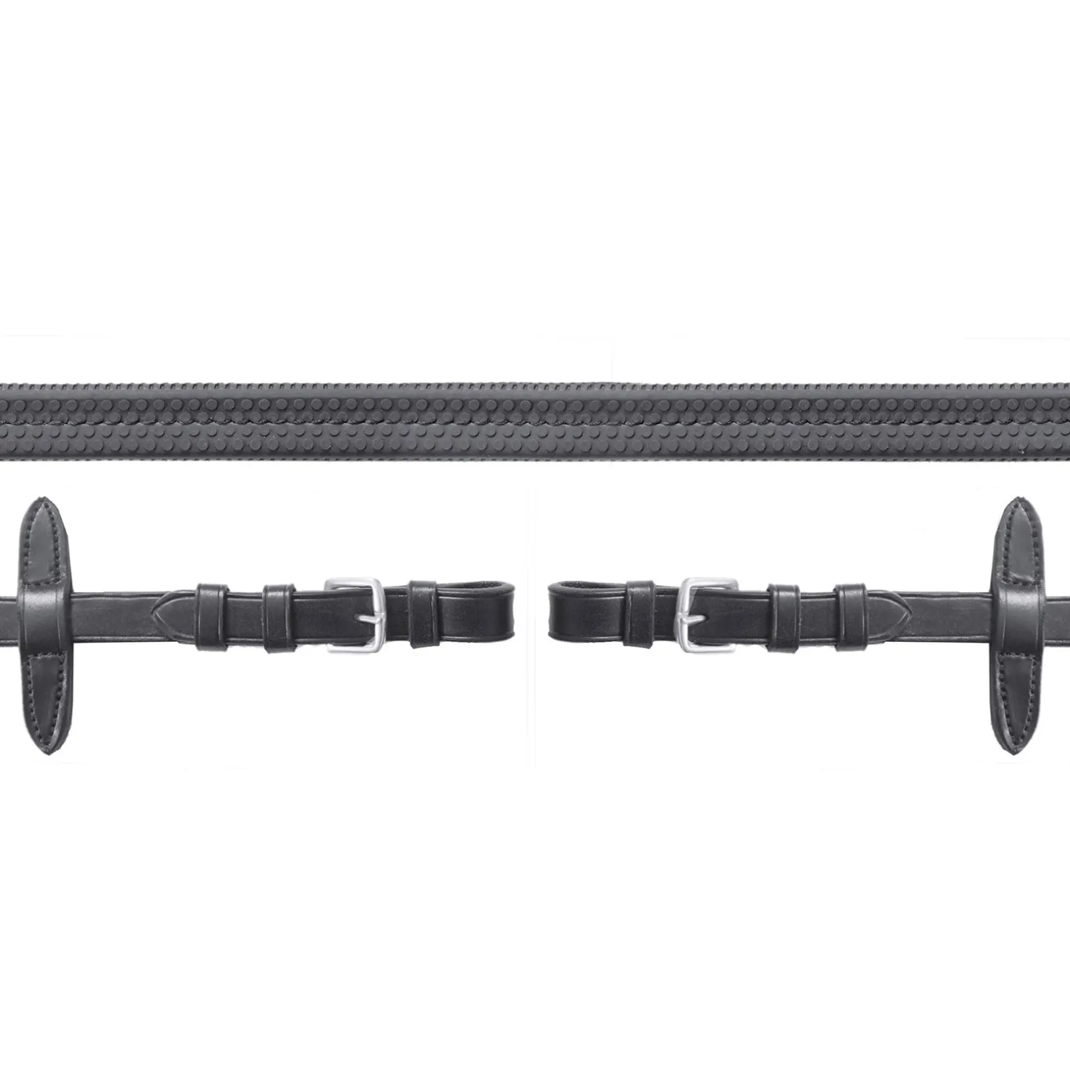 Hochwertiger, strapazierfähiger Gummizügel mit Martingalstopper.