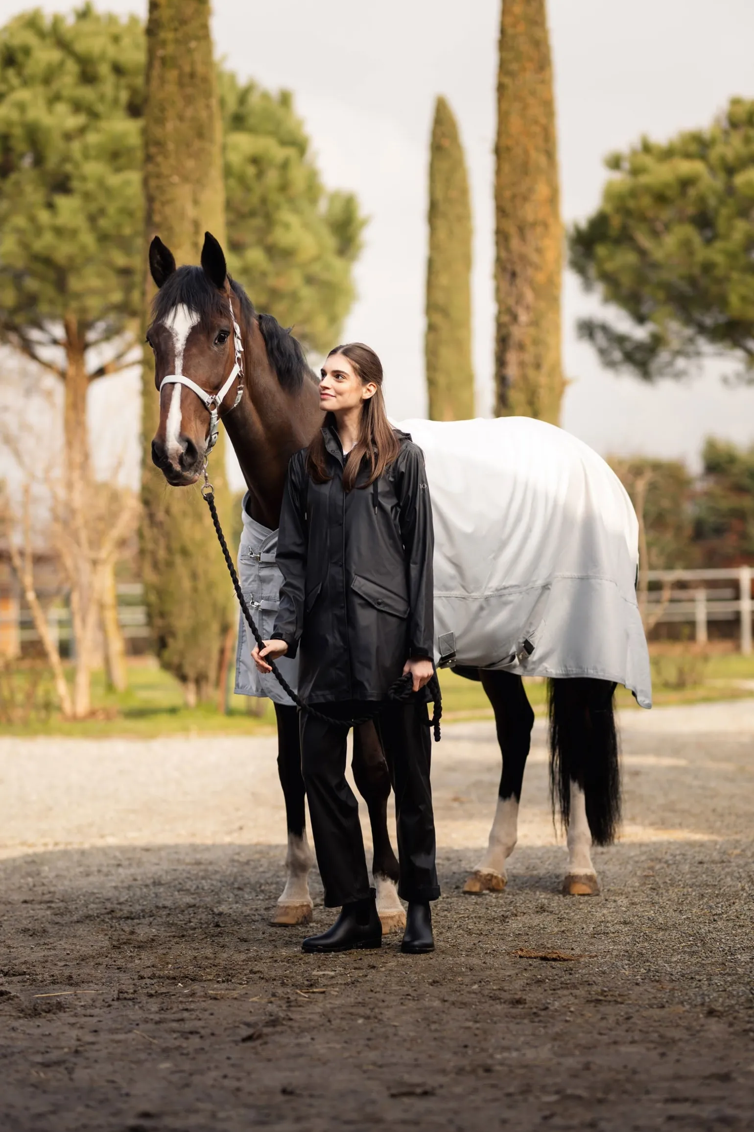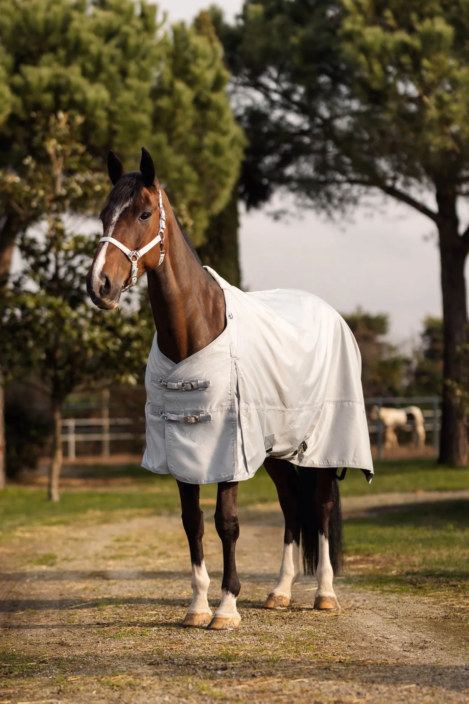 Leichte Decke schützt das Pferd vor Regenschauern während der Weidezeit.