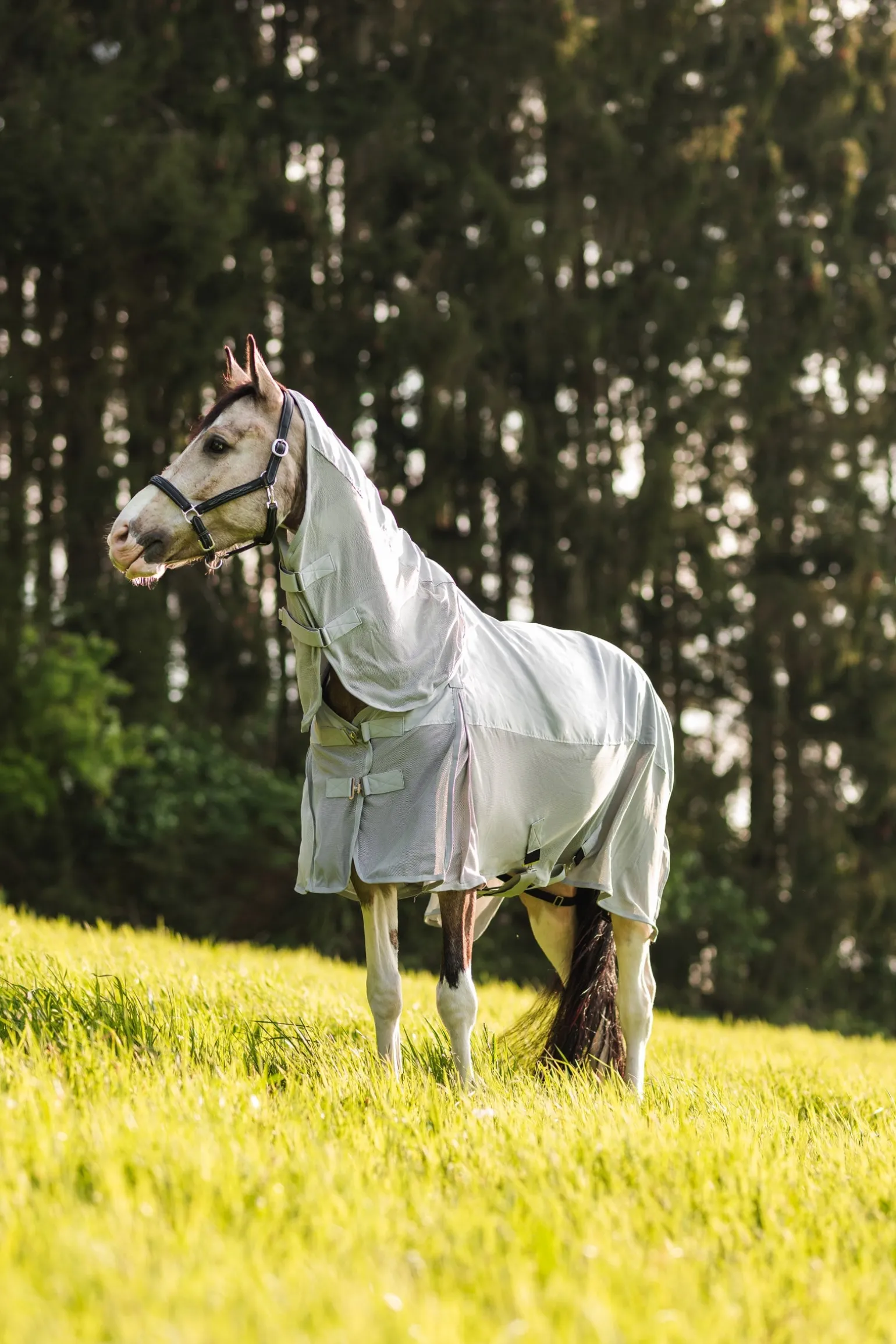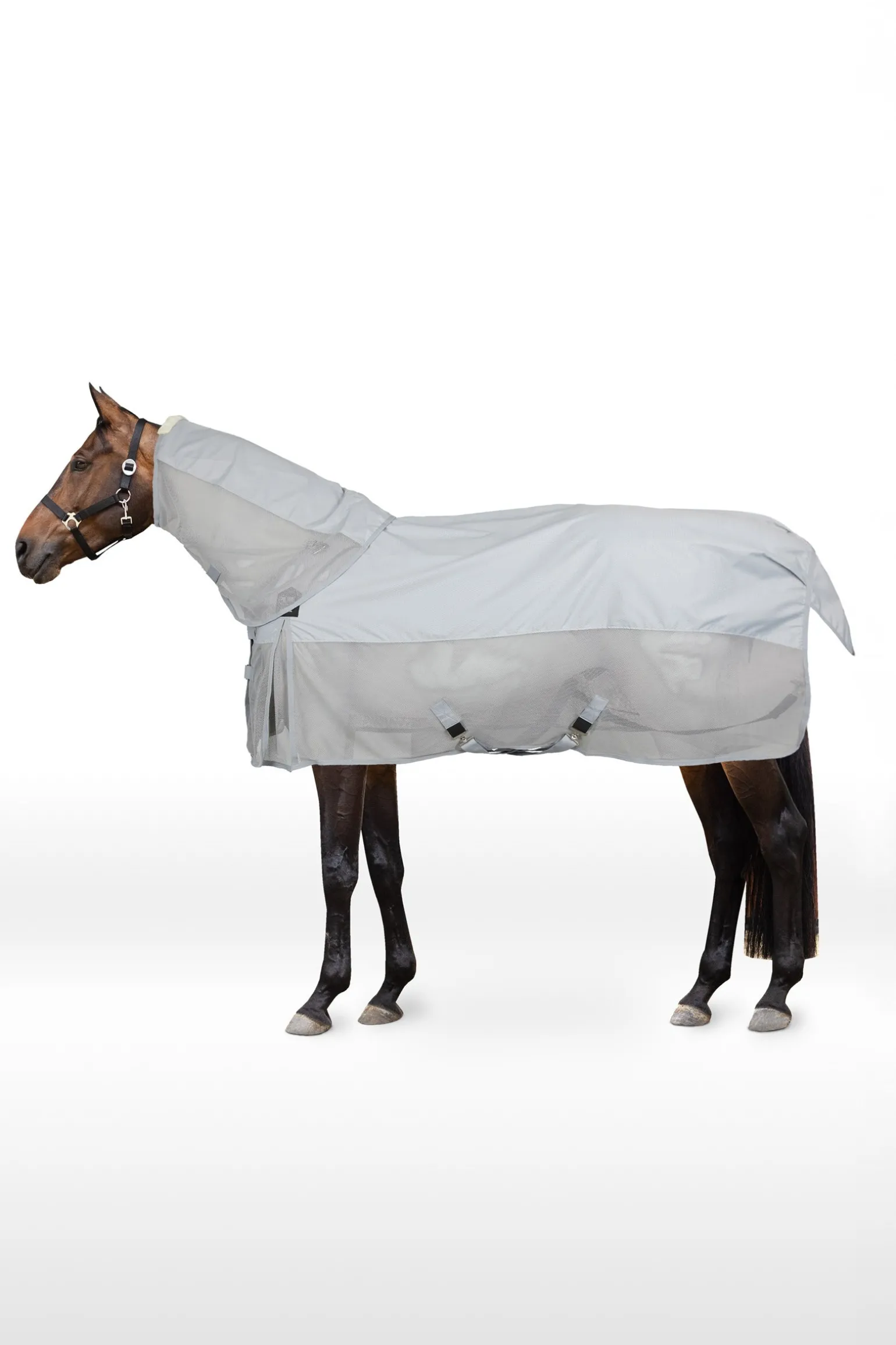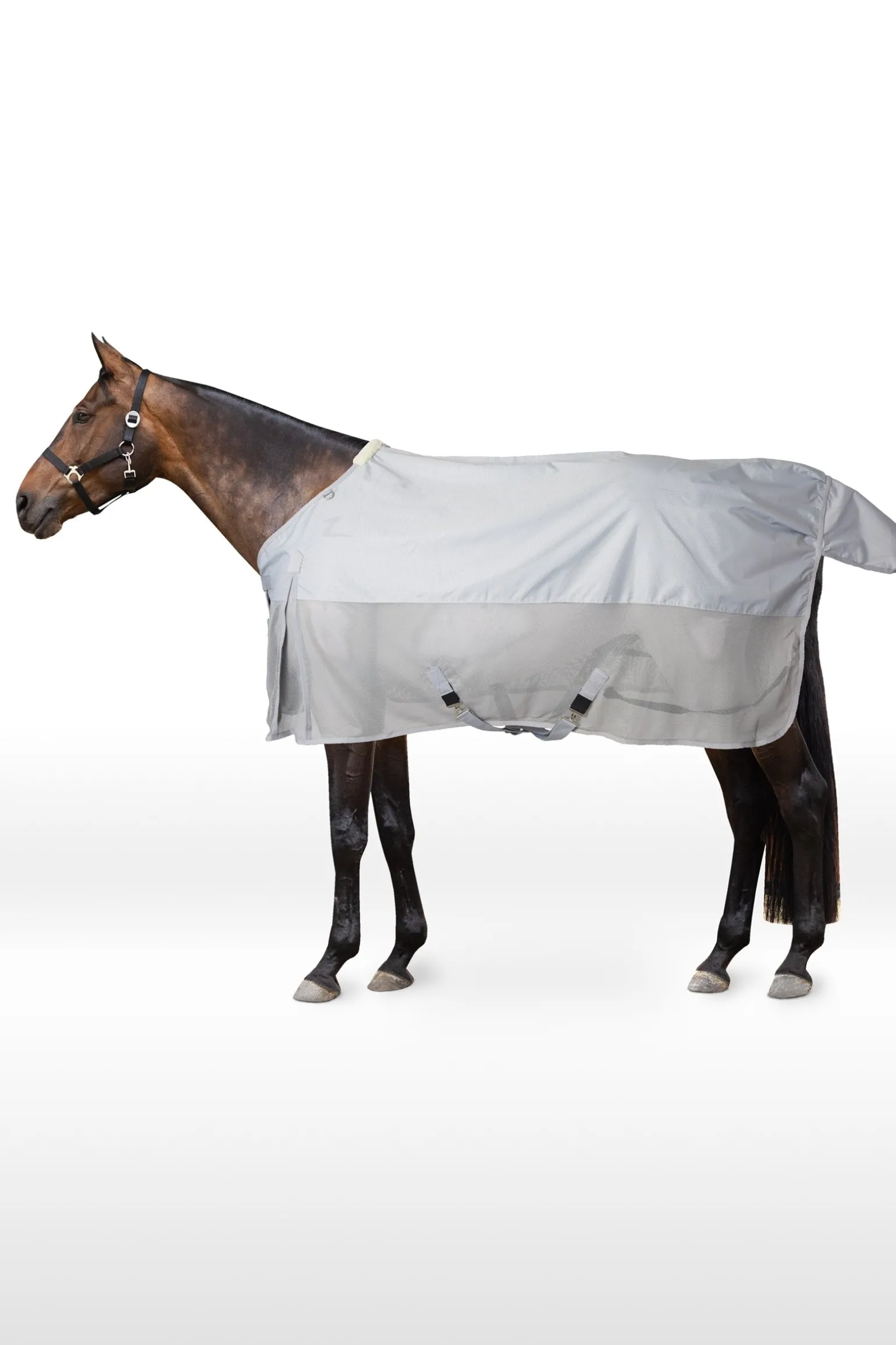 Die Horze Nevada Combo-Decke hat alles, was dein Pferd im Sommer braucht: Der obere, wasserdichte Teil schützt vor Regen und ist aus lichtreflektierendem Gewebe gefertigt. Das atmungsaktive Unterteil hält Fliegen fern. Weiches Kunstfell am Widerrist bietet Komfort. Das abnehmbare Halsteil bietet zusätzlichen Schutz und Atmungsaktivität und ist einfach zu befestigen. Hohe Gehfalten schränken die Bewegungsfreiheit deines Pferdes nicht ein. Der doppelte Frontverschluss, die Kreuzgurte und die Beinschlaufen halten die Decke an ihrem Platz.
