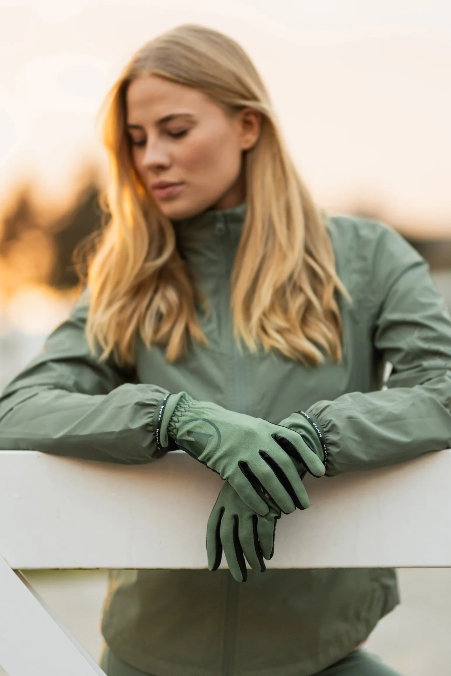Schlupf-Handschuhe aus atmungsaktivem Material, die dich beim Training im Sommer komfortabel halten. Das dehnbare Obermaterial mit einem hübschen Logodetail auf dem rechten Handrücken gibt dir Bewegungsfreiheit, während der Stoff auf der Handfläche einen guten Halt an den Zügeln bietet.