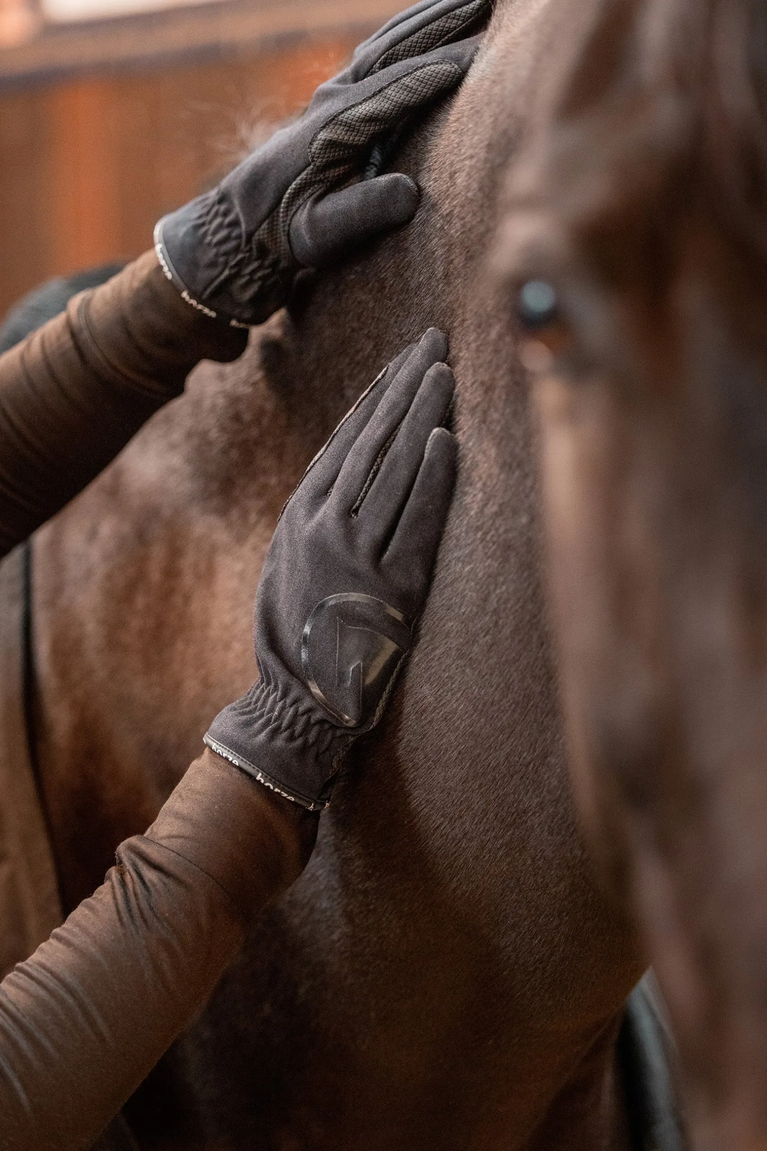Schlupf-Handschuhe aus atmungsaktivem Material, die dich beim Training im Sommer komfortabel halten. Das dehnbare Obermaterial mit einem hübschen Logodetail auf dem rechten Handrücken gibt dir Bewegungsfreiheit, während der Stoff auf der Handfläche einen guten Halt an den Zügeln bietet.