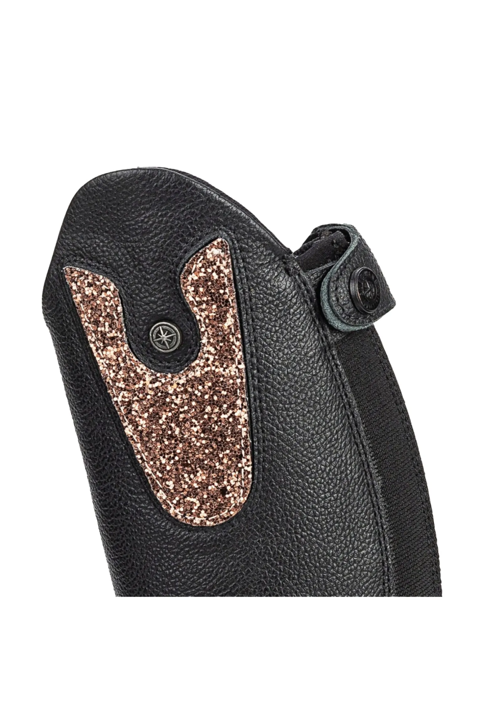 Mit Klettverschluss auswechselbares Patch. Die austauschbaren Oberteile sind in vielen unterschiedlichen Variationen erhältlich und speziell für Suedwinds Kinder- und Jugendstiefel „Nova Kids Fun Leather – Convertible“ entwickelt. Ob schwarze Glitzer-Kristalle, Lackleder oder ganz neutral, die austauschbaren Patches bieten dir viele Möglichkeiten deinen Stil individuell anzupassen.