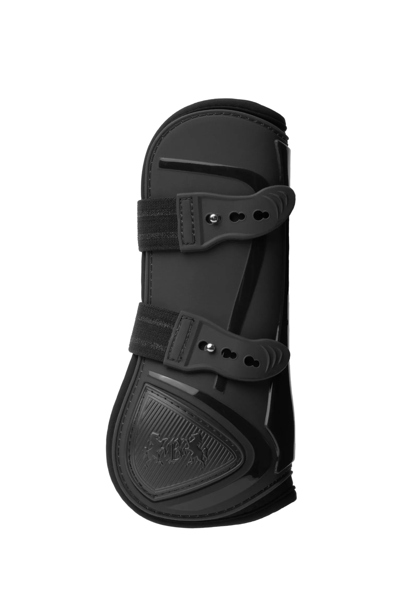 Springgamaschen mit zwei Riemen und elastischem Pin-Verschluss für sicheren Halt. Stoßabsorbierende PU-Außenschale für optimalen Schutz. Weiche Polsterung für maximalen Komfort. Silikon-Logo für eine stilvolle Optik. Pflegeleicht und schnelltrocknend.