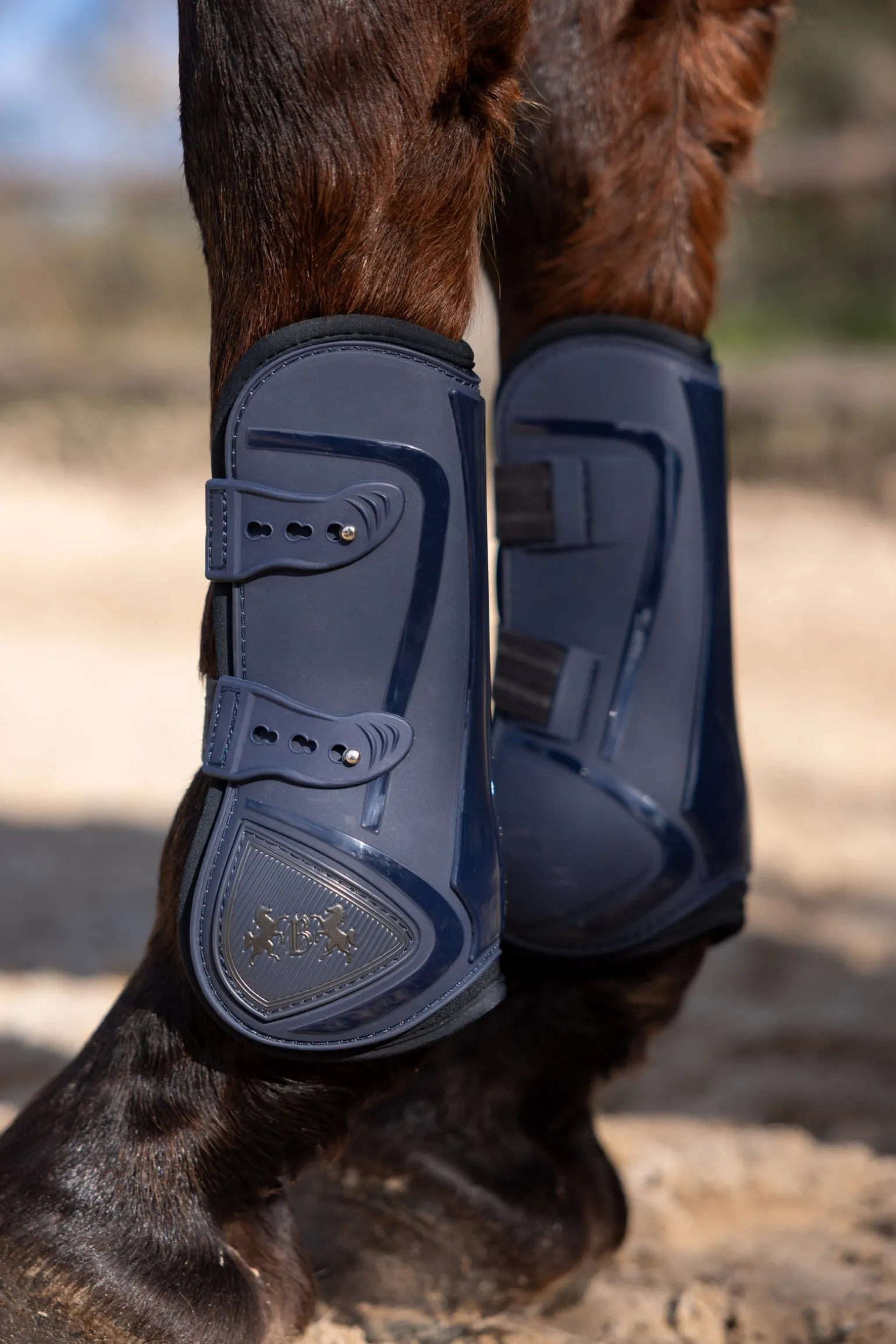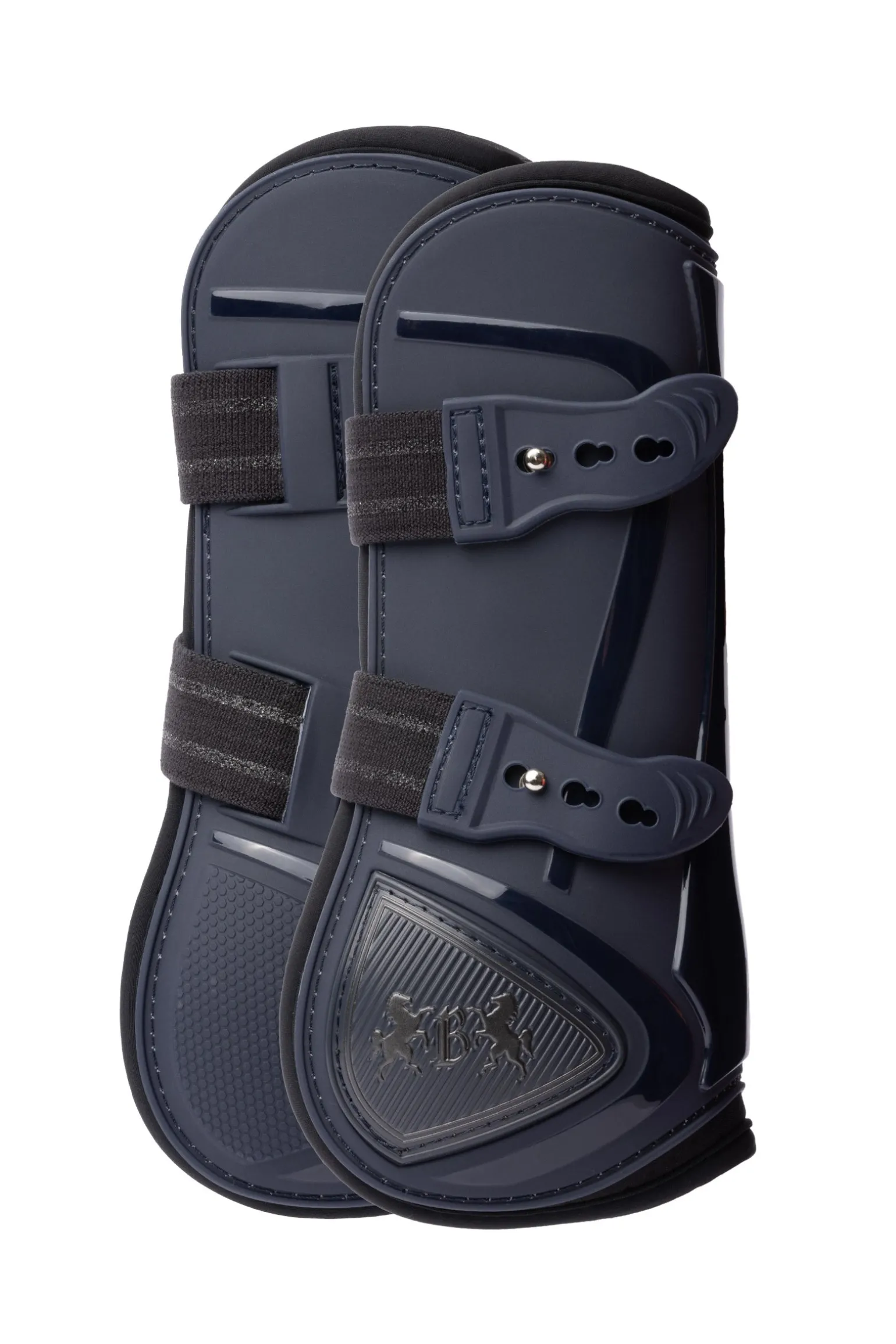 Springgamaschen mit zwei Riemen und elastischem Pin-Verschluss für sicheren Halt. Stoßabsorbierende PU-Außenschale für optimalen Schutz. Weiche Polsterung für maximalen Komfort. Silikon-Logo für eine stilvolle Optik. Pflegeleicht und schnelltrocknend.