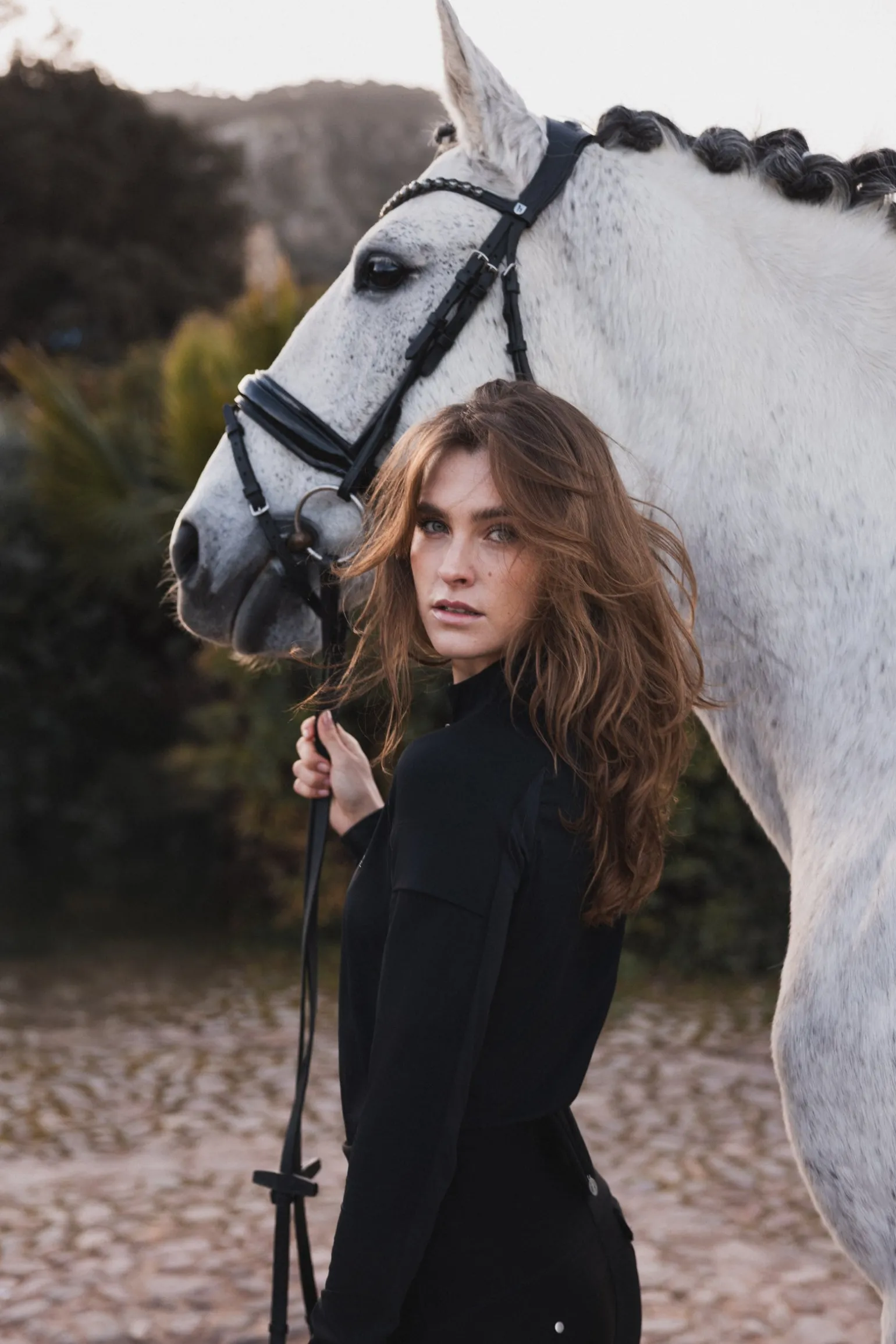 Dieses Damen Trainingsshirt vereint Funktionalität und Komfort für aktive Reiterinnen. Das stretchfähige und atmungsaktive Material sorgt für optimale Bewegungsfreiheit und Belüftung. Der Frontreißverschluss ermöglicht ein einfaches An- und Ausziehen sowie eine Temperaturregulierung. Eine praktische Handytasche am Ärmel hält wichtige Utensilien griffbereit. Bietet UV-Schutz mit UPF 40+ für Outdoor-Aktivitäten. Das schnelltrocknende und pflegeleichte Material macht es ideal für das tägliche Training.