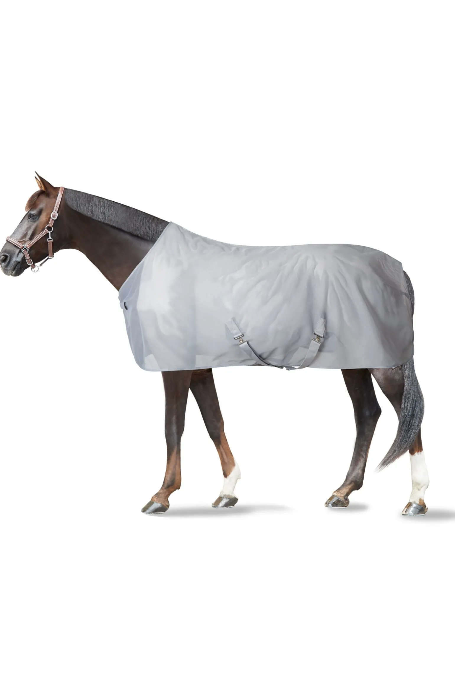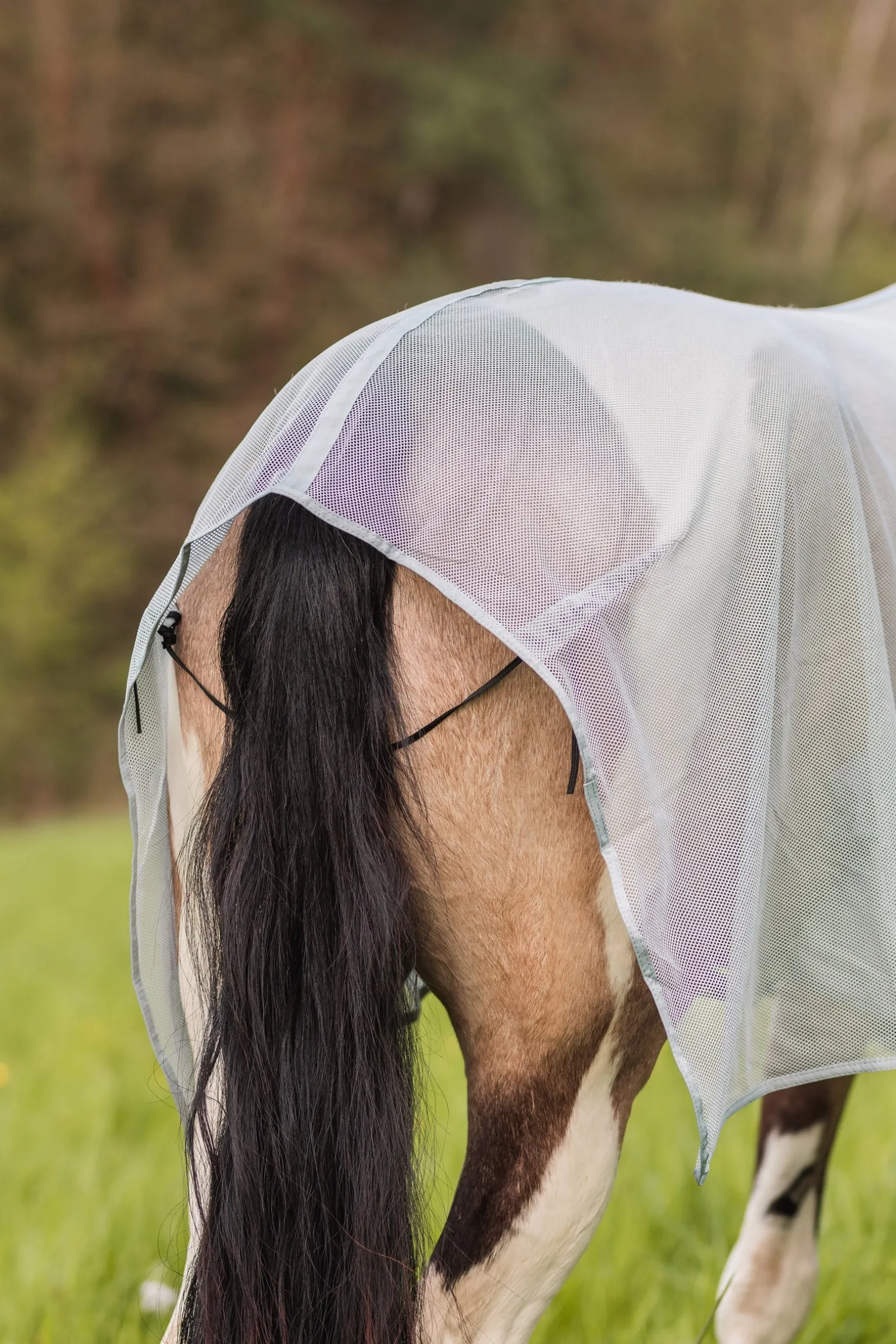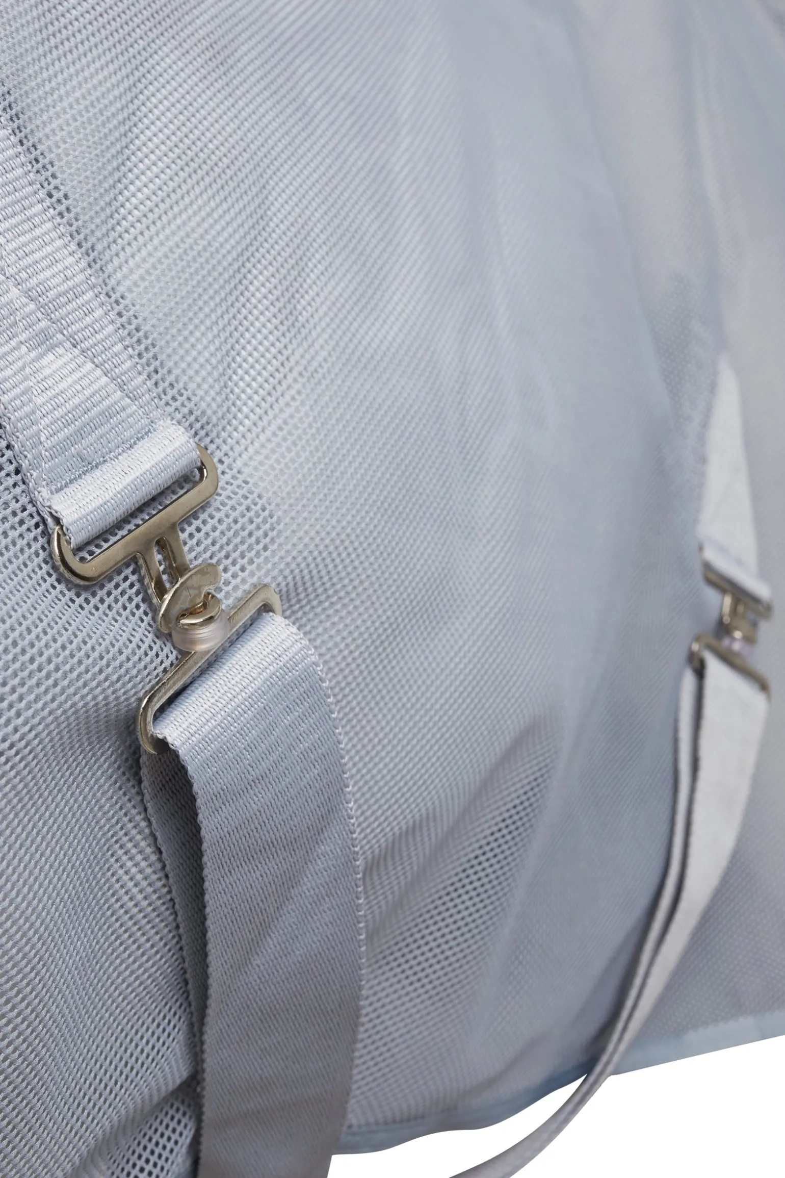 Perfekt für den Transport oder für den Einsatz im Stall. Diese leichte Mesh-Decke kann mit dem einfachen Front-Klettverschluss leicht angebracht und entfernt werden. Eine großartige Wahl als Fliegenschutz im Stall oder Transporter.