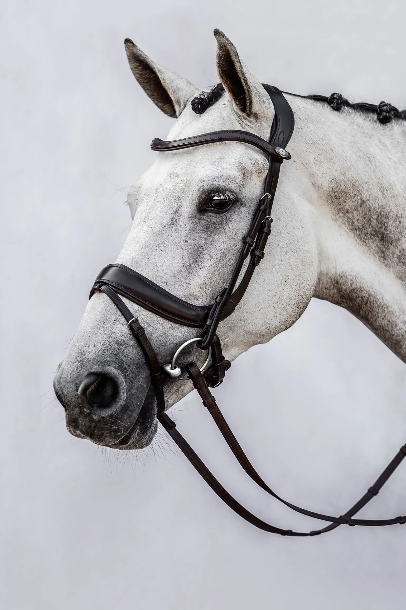 Diese Trense ist für das etwas sensiblere Dressurpferd konzipiert und teilt viele Merkmale mit der Paragon-Trense, wobei der größte Unterschied der Aachener Riemen an dieser Trense ist. Die Trense ist sowohl für Dressur als auch für Springen geeignet.