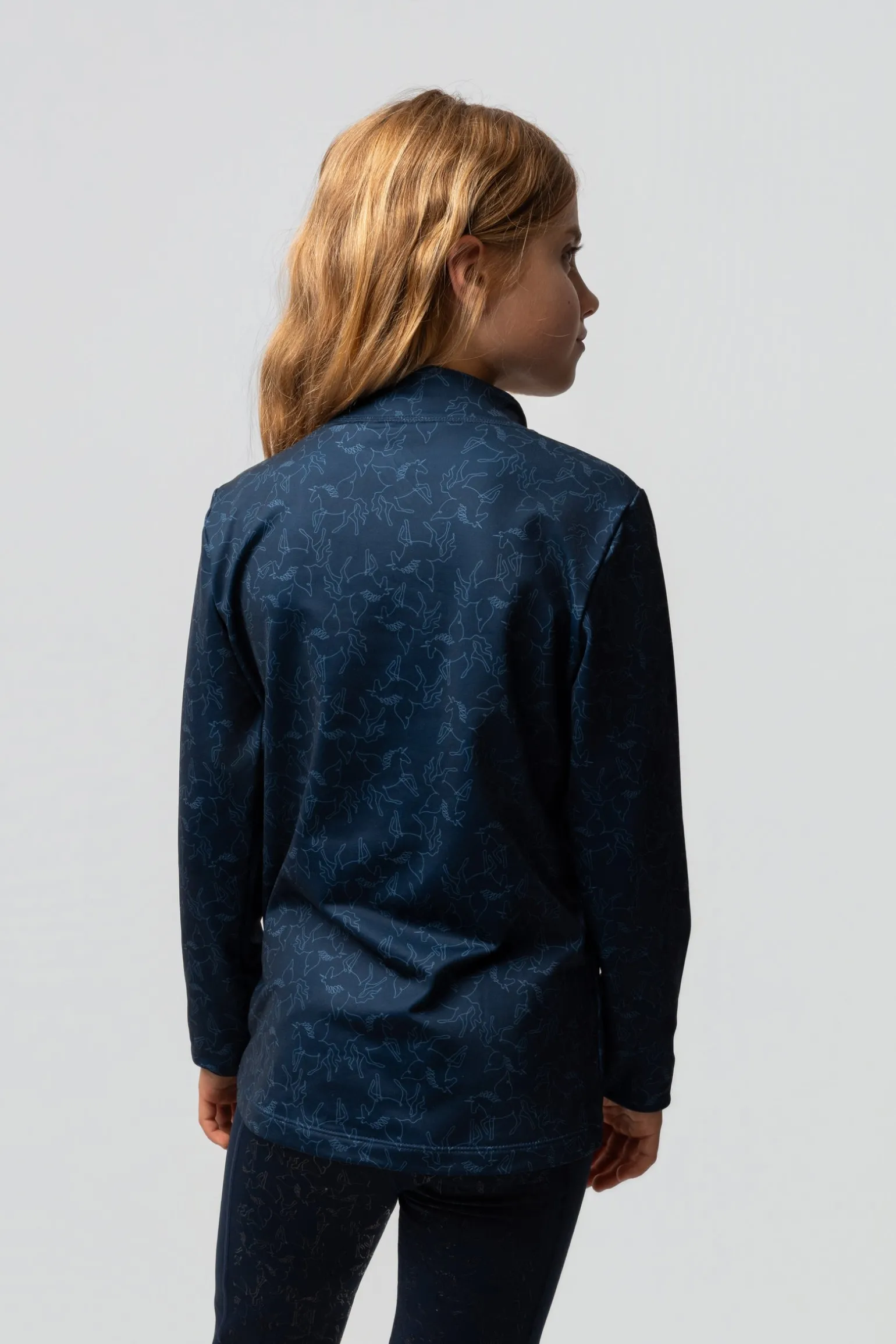 The Horze Pegasus Kids’ Training Shirt is a fun and practical choice for active young riders. Made from breathable, brushed fabric, it provides warmth and comfort while remaining lightweight. The quarter-zip neck allows for easy ventilation, and the stretch fabric ensures freedom of movement. A bold Pegasus print adds a touch of fun to every ride. Easy to care for and durable, this shirt is perfect for training or casual wear.