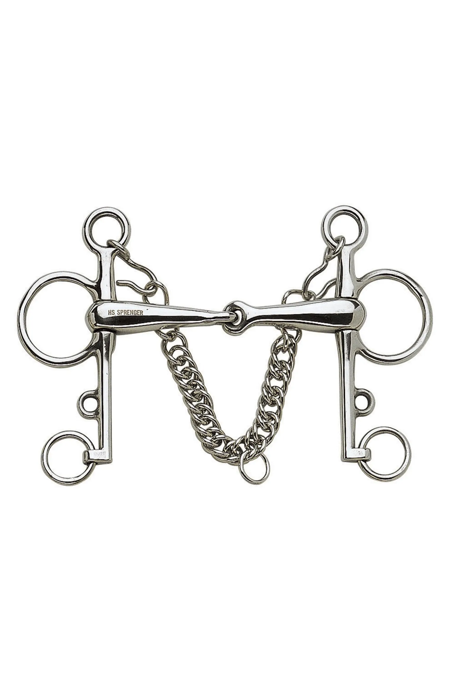 Das Pelham ist ein Gebiss, welches etwas mehr Hebelwirkung über das Genick ausübt. Der Druck auf den Unterkiefer wird über eine Kinnkette ausgeübt. Im weitesten Sinne ist ein Pelham eine Kombination von Kandare und Wassertrense. Pelhams können mit ein oder zwei Zügeln verwendet werden, was auch Möglichkeiten für verschiedene Verschnallungen der Zügel gibt. Direkter Druck wird auf die Zunge und die Laden des Pferdes ausgeübt, wenn der Reiter nur die Trensenzügel verwendet.Wenn Pferde oft mit den Kopf hochreißt macht es Sinn, einen zweiten Zügel am unteren Ende des Anzugs einzuschnallen, damit mehr Druck auf das Genick des Pferdes ausgeübt wird. Das Pferd wird dem Druck entweichen wollen und den Kopf senken. Der Anzug sollte einen maximalen Anstellwinkel von 45° (unterer Anzug zum Maul des Pferdes) haben, um zu verhindern, dass das Pferd den Kopf zu tief nimmt.Es ist weit verbreitet, dass zwei Zügel verwendet werden, um mehr Druck auf das Genick des Pferds auszuüben wenn dies notwendig ist. Pelhams können auch mit Pelham-Riemen verwendet werden. Diese Riemen werden im oberen und unteren Anzug eingeschnallt und der Zügel dann mit dem Riemen verbunden.