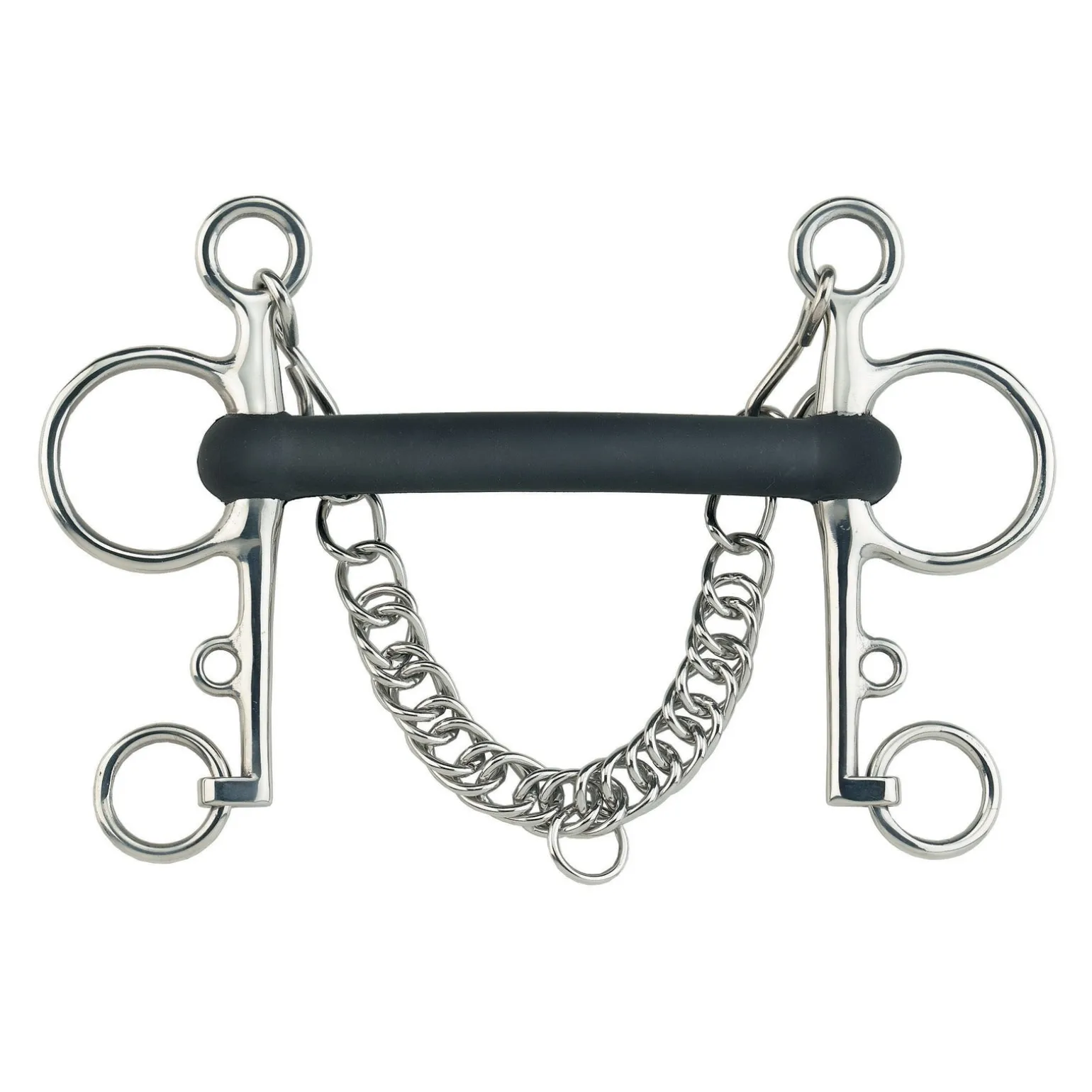 Gummigebisse von Sprenger sind aus weichem aber robusten Gummi gefertigt und haben einen Stahlkern innenliegend, um das Mundstück zu verstärken. Gummi hat generell einen reibenden Effekt. Daher ist es wichtig, dass Pferde speicheln und kauen wenn diese Gebisse verwendet werden. Wenn das Pferd nicht genügend Speichel produzieren kann, wird das Gebiss unangenehm.Anders als bei Gebissen aus reinem Metall besteht bei Kunststoff die Gefahr, durchgebissen zu werden, wenn das Gebiss nicht korrekt verschnallt ist und in Kontakt mit den Zähnen kommt.