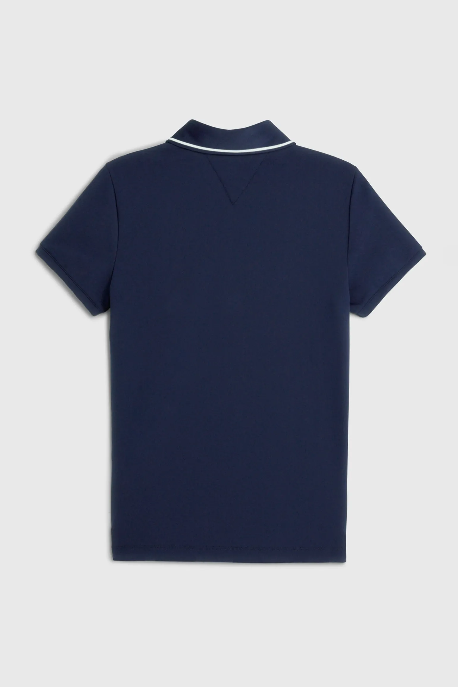 Performance Polo Shirt mit gedruckter Hilfiger Fahne und verborgenem Druckknopfverschluss. Hat das Logo auf der linken Brust aufgestickt und besteht aus feuchtigkeitsableitenden und geruchsneutralen Materialien.