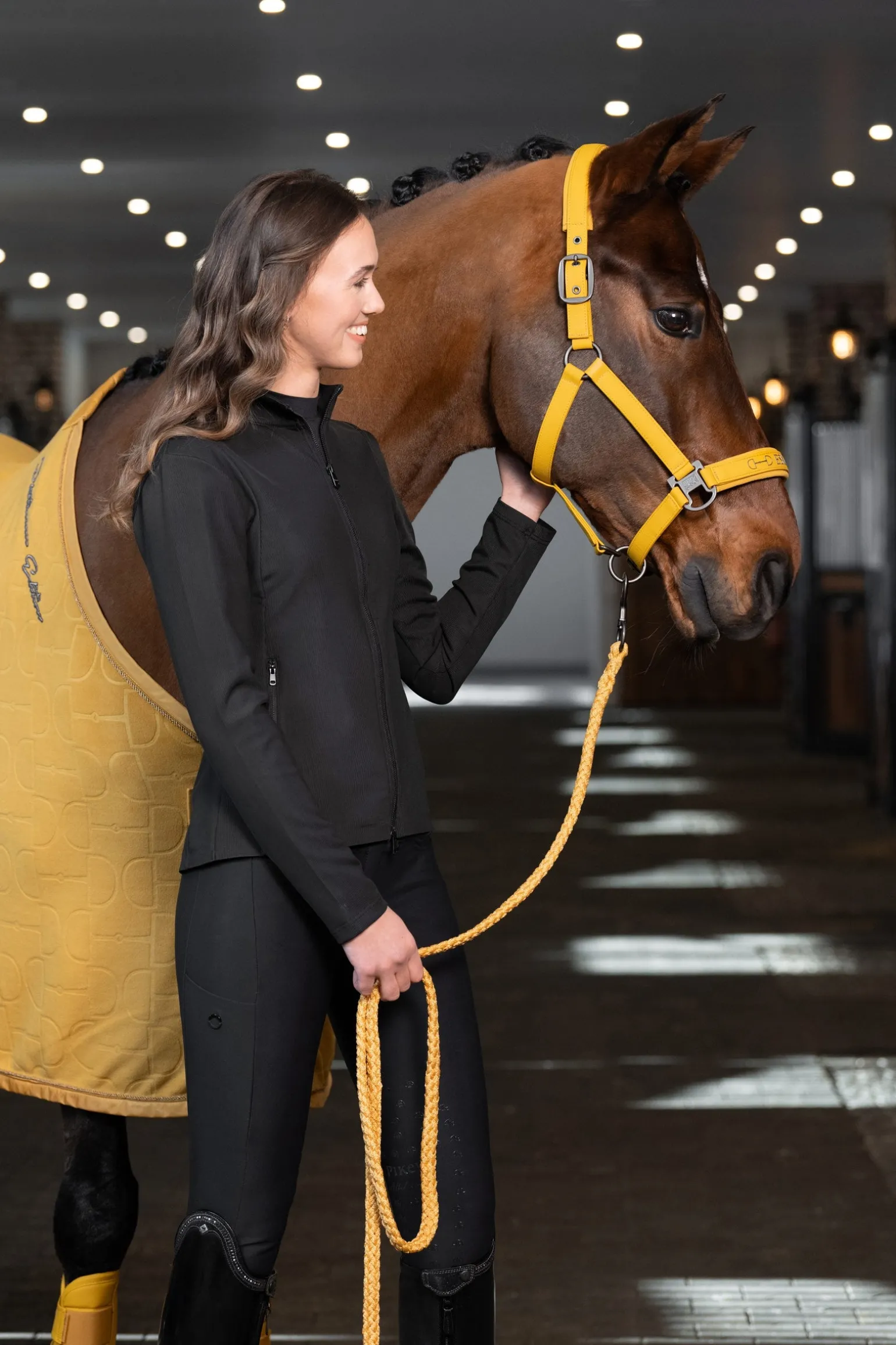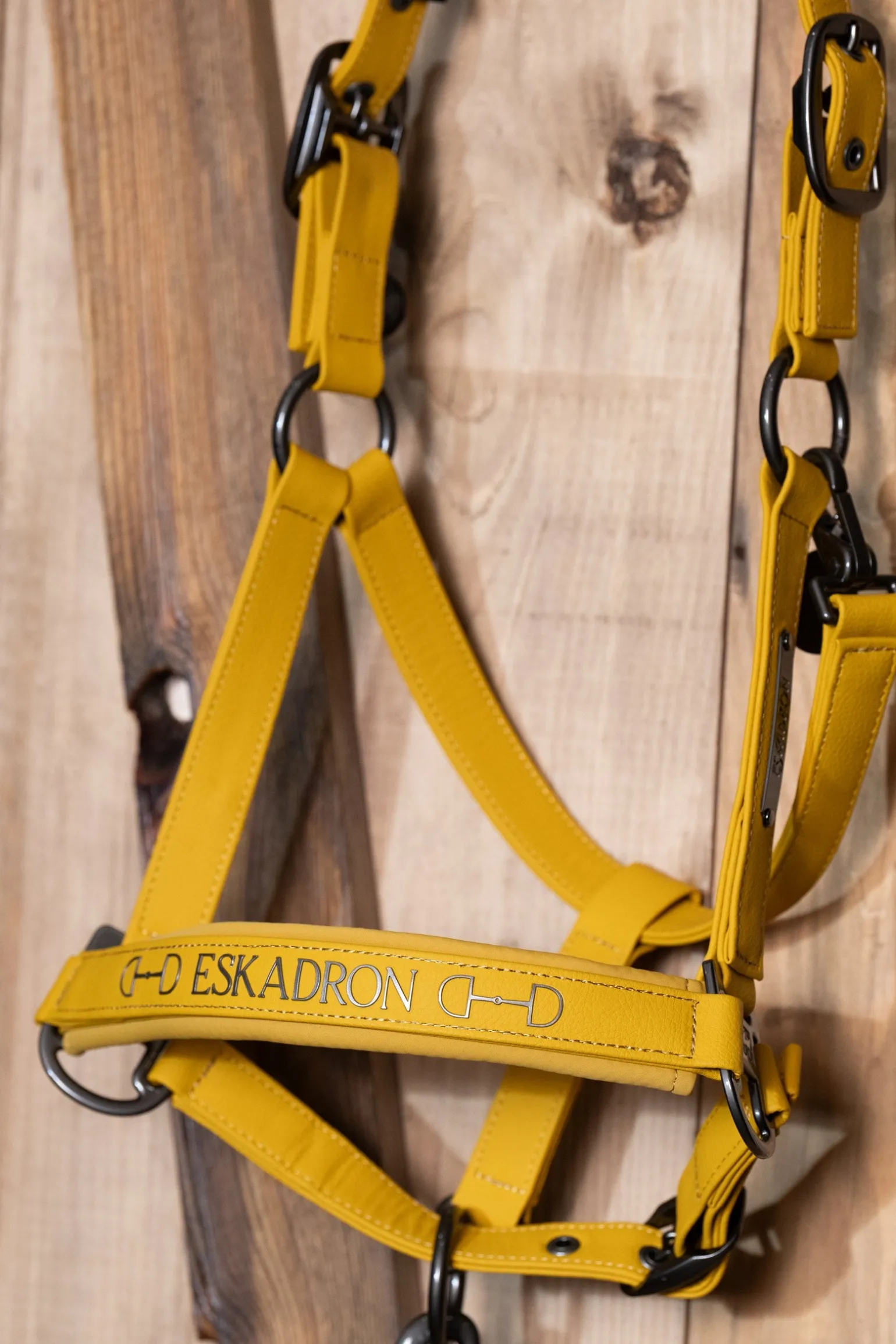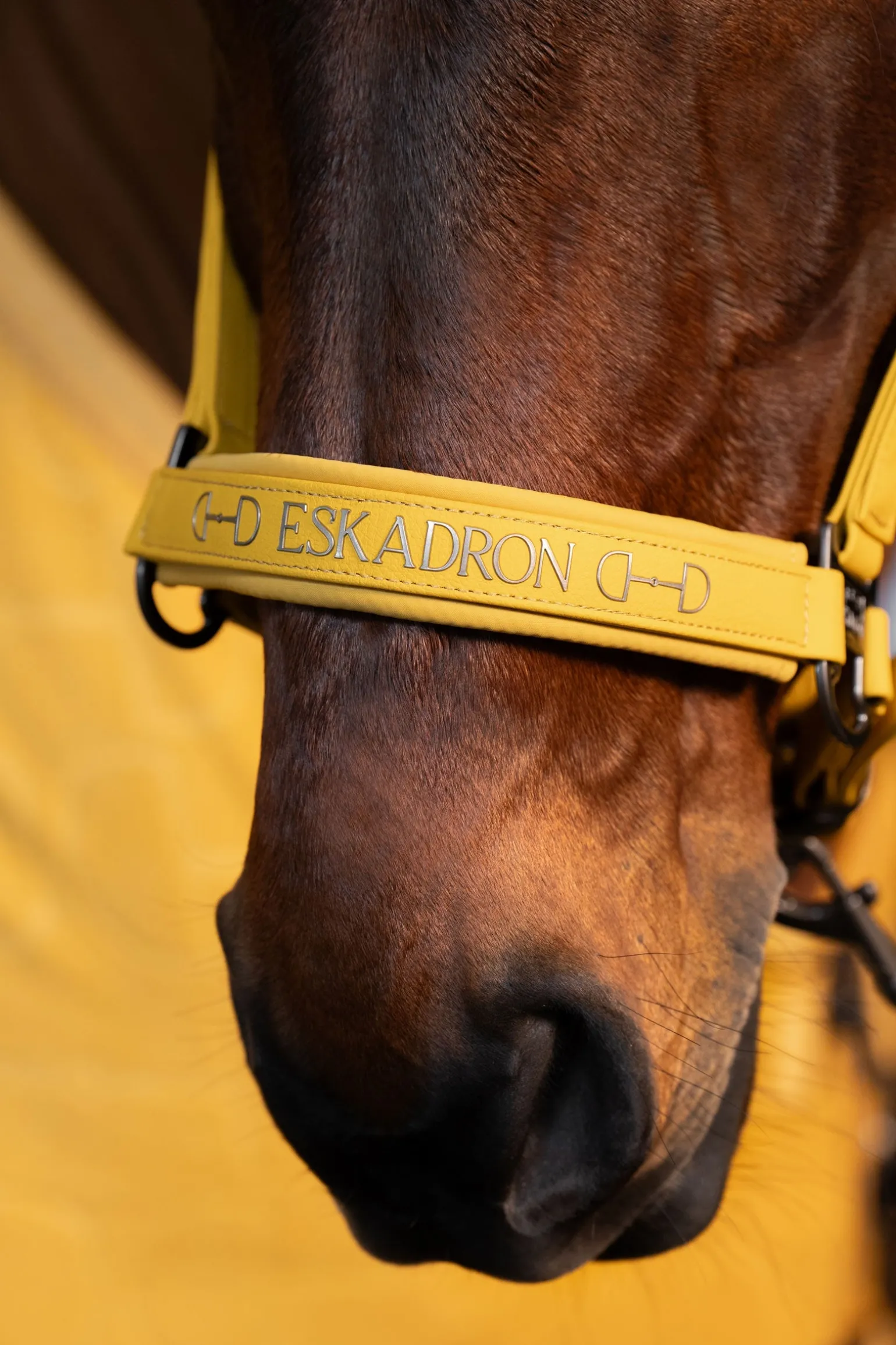 Dieses elegante Halfter verfügt über eine Premium-Oberfläche aus Kunstleder mit reißfestem Webbing innen für zusätzliche Haltbarkeit. Die weiche Softshell-Polsterung an der Nase und am Kopfstück sorgt für zusätzlichen Komfort. Pin-Buckles auf beiden Seiten ermöglichen eine optimale Anpassung, mit zusätzlicher Einstellmöglichkeit im Kinnbereich für eine perfekte Passform. Das Halfter ist mit hochwertigen taupe Metallbeschlägen, einem Noble Platinum Schriftzug auf dem Nasenriemen und einer zusätzlichen Eskadron Metallplatte an der linken Seite abgeschlossen.