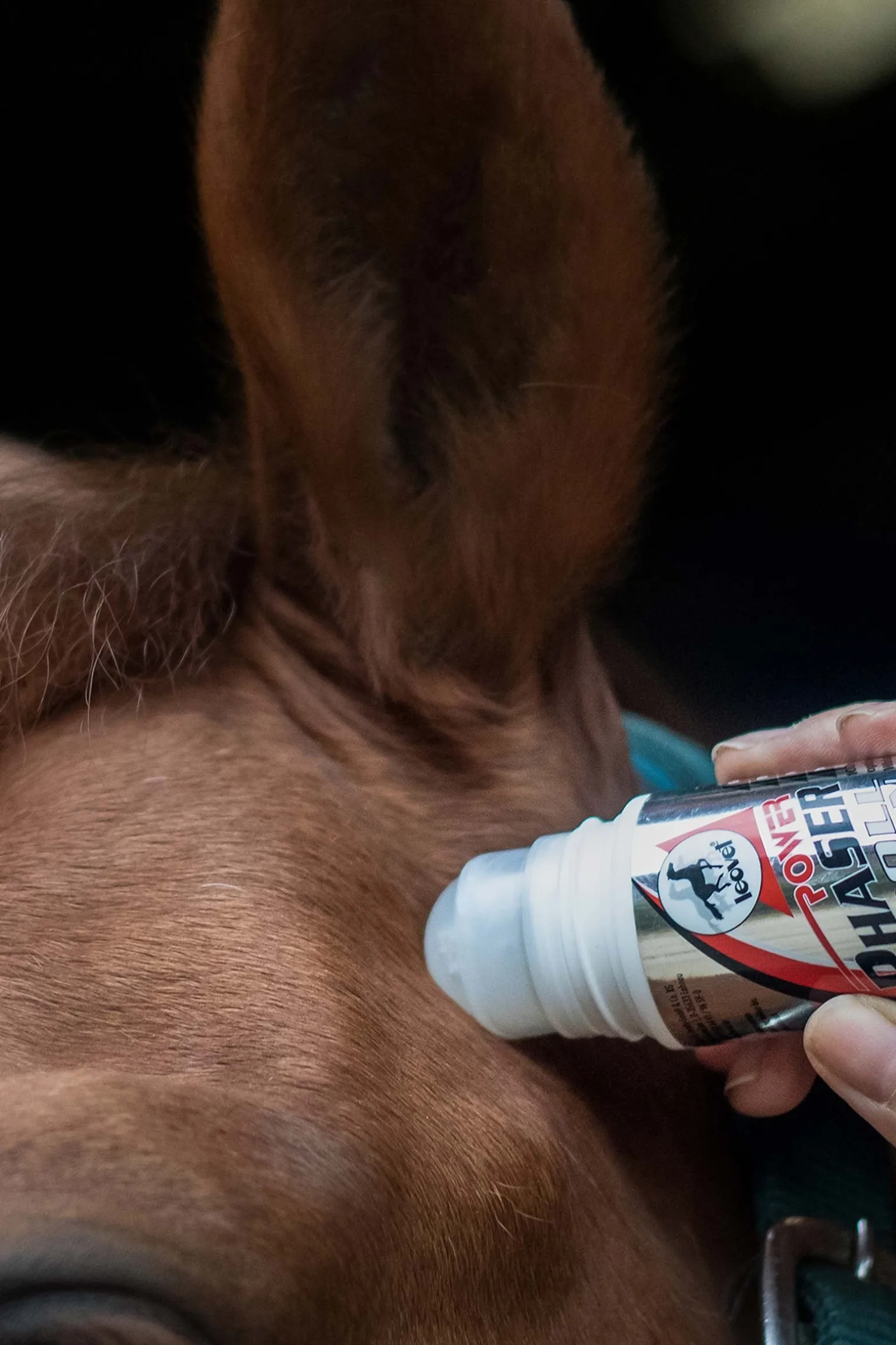 Power Phaser Roll On mit besonders hohem Gehalt an aktivem Wirkstoff schützt das Pferd vor Stechmücken, Bremsen, Fliegen und Zecken, auch wenn es schwitzt. Gut hautverträglich und auch für empfindliche Pferde hervorragend geeignet. Ideal für sensible Bereiche wie Ohren und Gesicht.