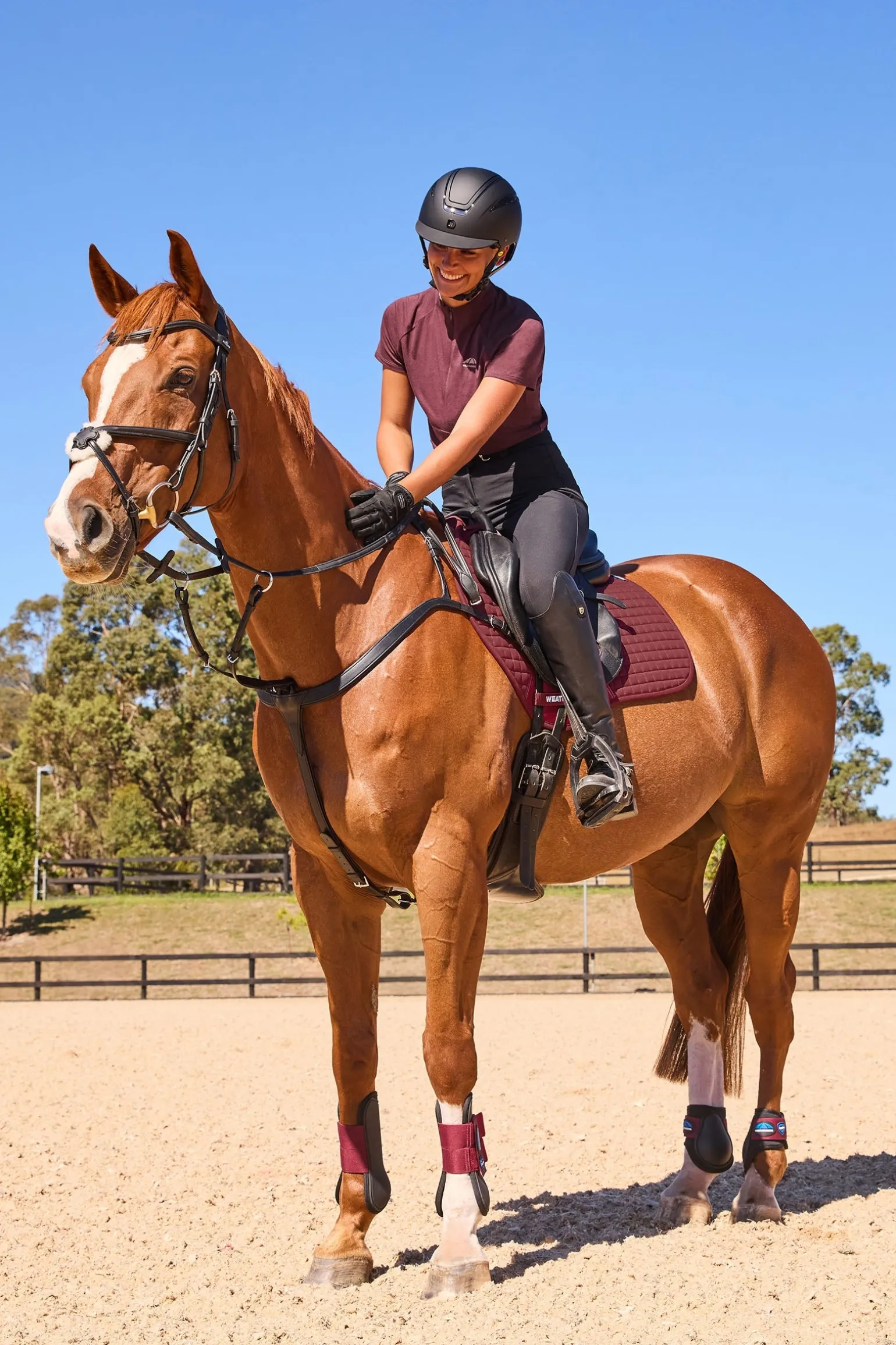 Diese Spring-Schabracke verfügt über ein atmungsaktives und strapazierfähiges Obermaterial aus 100 % Baumwolle mit reibungsfreier Einfassung. Die weiche wick-easy Unterfütterung nimmt Schweiß auf und trocknet schnell, wodurch ultimativer Komfort unter dem Sattel gewährleistet wird. Die renommierte Air-Tec Mesh-Rückenspalte sorgt für überlegene Atmungsaktivität, während das hohe Widerristdesign für ausreichend Freiraum sorgt, um Reibung am Widerrist zu vermeiden. Revolutionäre elastische und gewebte D-Ring-Gurte ermöglichen Bewegung, verhindern jedoch übermäßiges Dehnen und sichern das Pad an Ort und Stelle. Gewebte Gurtaufnahmen stabilisieren das Pad weiter, und die starke 1680 Denier Gurtpatch sorgt für dauerhafte Haltbarkeit.