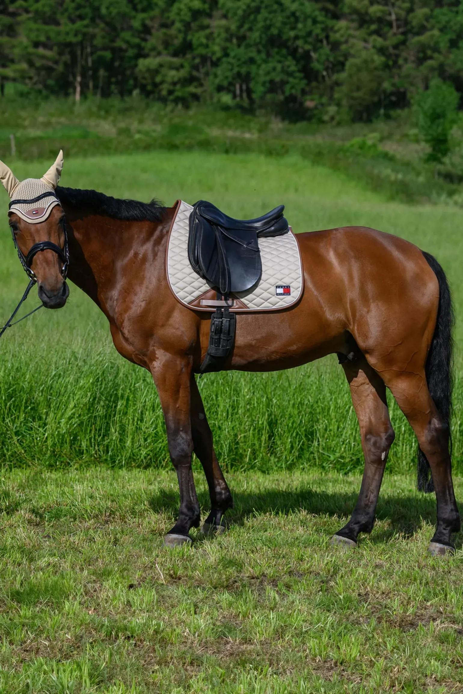 Die Tommy Hilfiger Equestrian Princeton Dressurschabracke vereint Eleganz mit Funktionalität. Mit einer edlen Kunstlederverzierung und klassischer Rautensteppung bietet sie einen stilvollen und zugleich praktischen Look. Das Tommy Hilfiger Logo auf beiden Seiten setzt einen markanten Akzent, während das waffelstrukturierte Innenfutter für Atmungsaktivität und Feuchtigkeitsregulierung sorgt. Hergestellt aus veganem Material, garantiert diese Schabracke Komfort und Nachhaltigkeit bei jeder Reiteinheit.