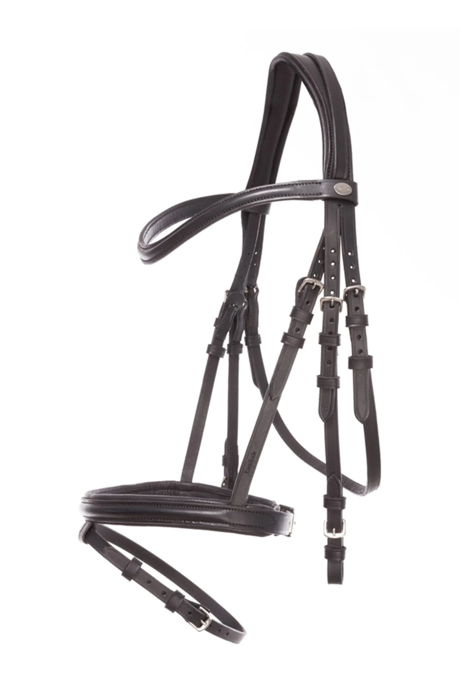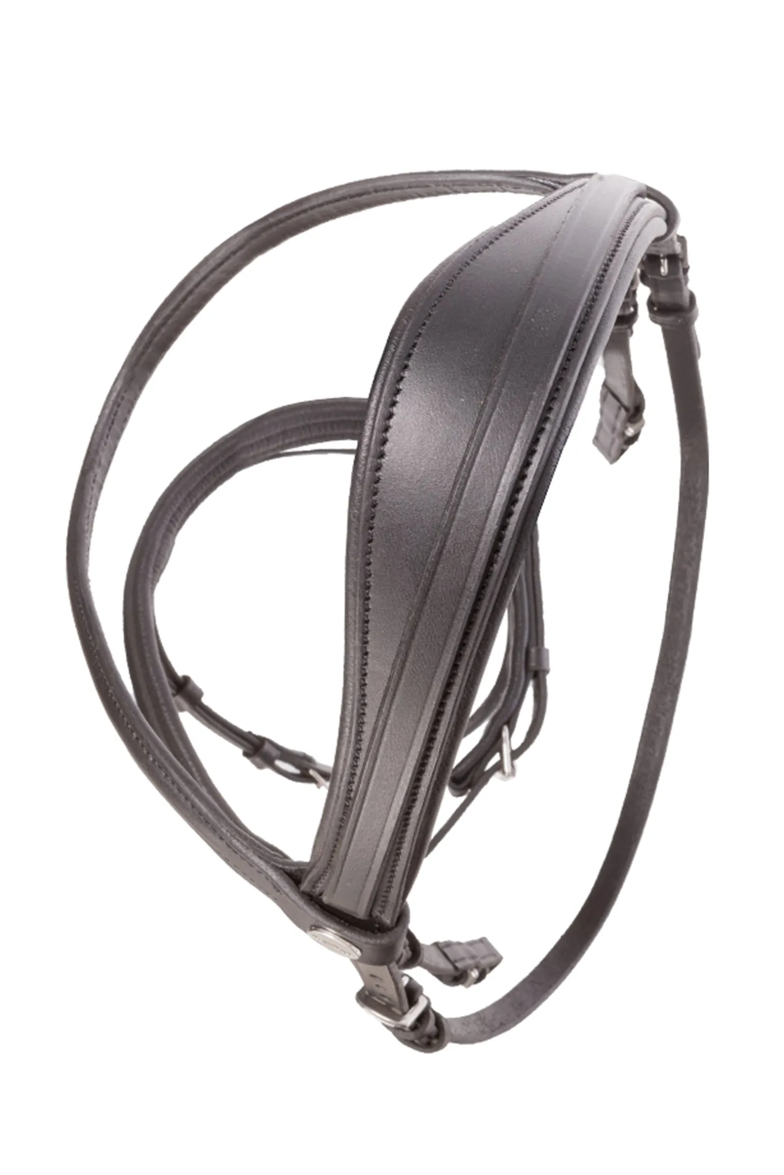 Die Trense „Quentin“ aus der Ecoline Reihe hat ein englisch-kombiniertes Reithalfter, wobei das Reithalfter überlaufend ist, so dass weniger Verschnallungen notwendig sind. Das Genickstück ist anatomisch geformt und weich gepolstert. Das Stirnband ist schlicht und gerade geschnitten. Inklusive Gurtzügel mit Stegen.