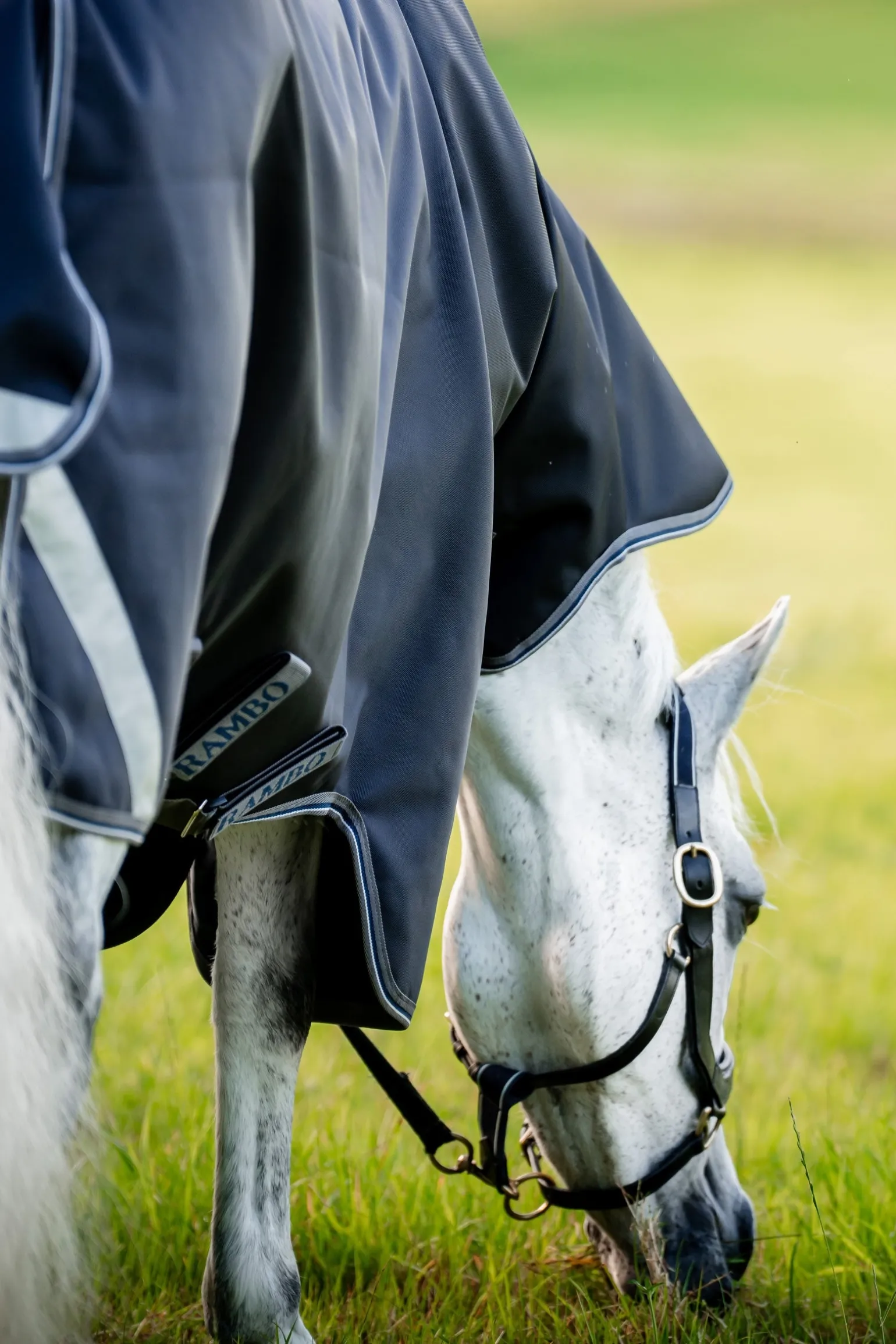Die ultimative wasserdichte Weidedecke, jetzt noch stärker als je zuvor! Die Rambo® Supreme 1680D Vari-Layer Turnout (250g Medium) ist mit einer Außenschicht aus wasserdichtem und atmungsaktivem 1680D ballistischem Nylon ausgestattet, das 120 % stärker ist als das herkömmliche 1000D ballistische Nylon!