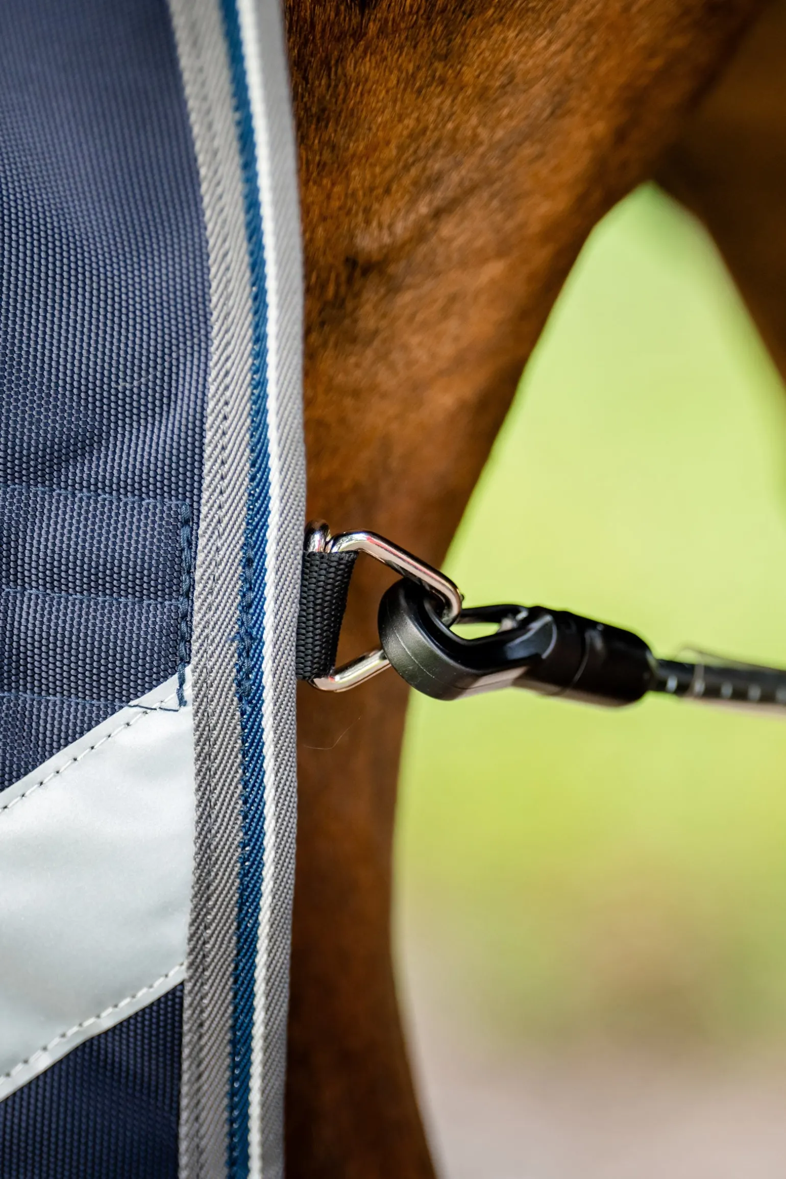 Der Surefit-Halsausschnitt mit V-Brustverschluss und die Beinausschnitte bieten deinem Pferd volle Freiheit beim Bewegen, Spielen und Grasen. Die Decke wird abgerundet durch Reflektorstreifen, einen abwaschbaren Schweifriemen und drei abnehmbare Kreuzgurte mit dem Rambo® Sicherheits-Bauchgurt-System.