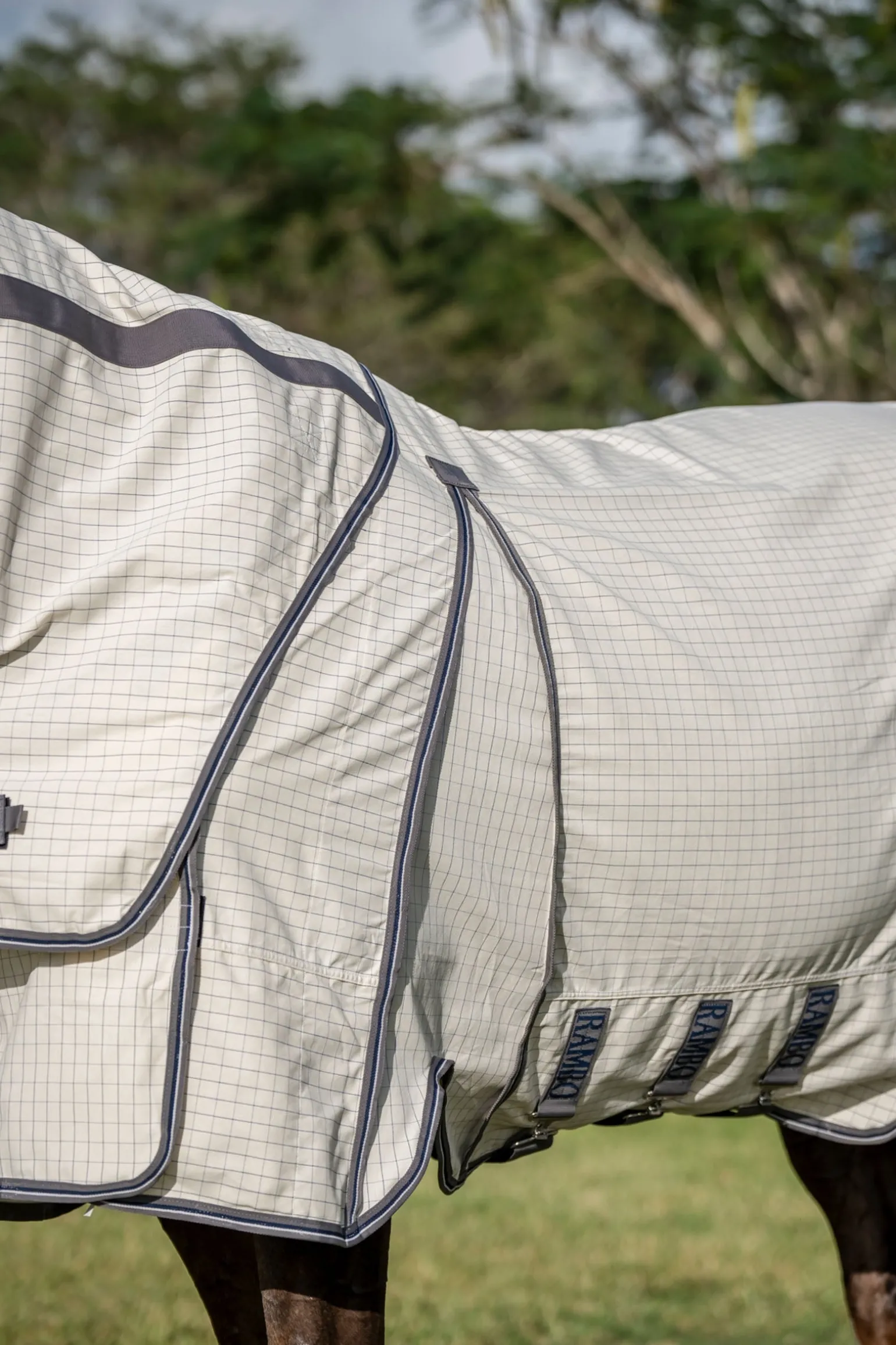 Die Horseware Rambo Optimo Supreme Summer Sheet Plus, 0g, wurde für maximalen Komfort und Schutz bei warmem Wetter entwickelt. Das Polycotton-Außenmaterial mit 40 % Baumwollanteil sorgt für hervorragende Atmungsaktivität und UV-Schutz. Besonders geeignet für breitere Pferde, bietet sie durch die patentierte Split-Technologie maximale Schulterfreiheit und Beweglichkeit. Das innovative Frontdesign verhindert Scheuern an Brust und Hals und sorgt für höchsten Tragekomfort für dein Pferd.