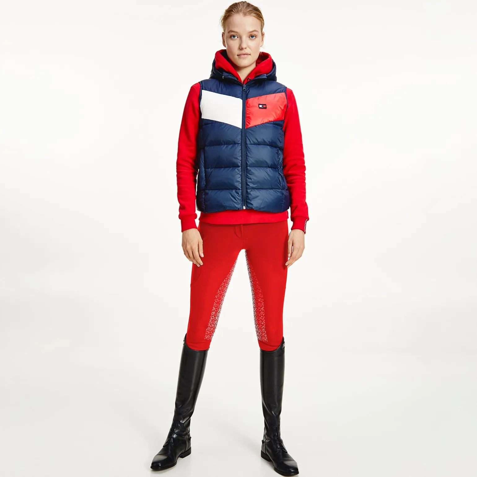 Mitteldicke Daunenveste gefüllt mit Re:Down – 100% recycelter Daune. Wasserabweisendes Aussenmaterial in Matt- und Glanz Kombination. Abnehmbare Kapuze, zwei Reissverschlusstaschen seitlich und eine Reissverschlusstasche inwendig. Logo Badge auf der Brust. Ideal fürs Training! GRS (Global Recycled Standard) zertifiziert.