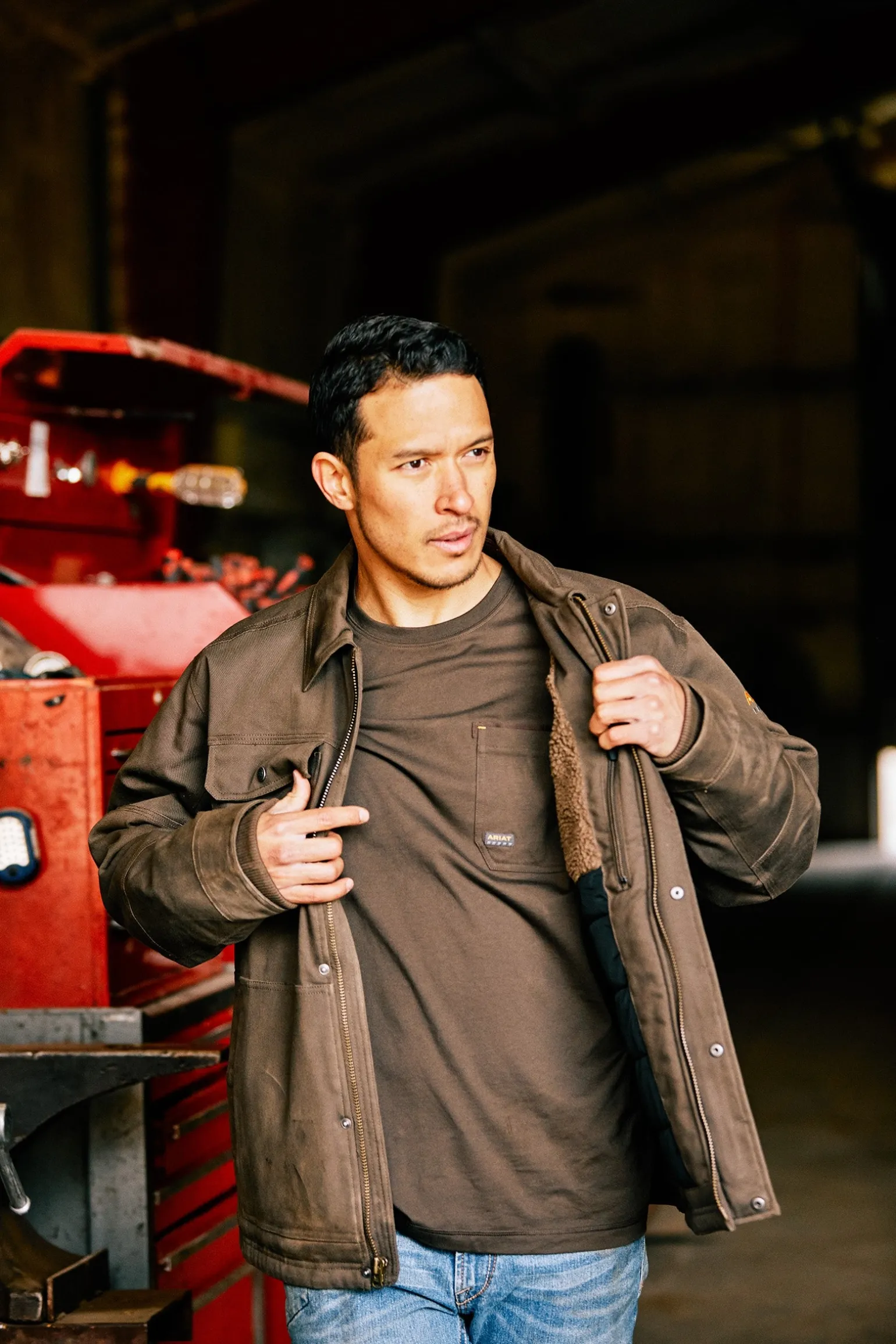 Robuste und schwere Jacke ohne Steifheit oder Masse, die Sie schnell aufwärmt. Sie ist durchgehend intelligent isoliert und verfügt über ein Sherpa-Futter am Oberkörper, das für eine zusätzliche Schicht Wärmespeicherung sorgt, wo Sie es am meisten brauchen.