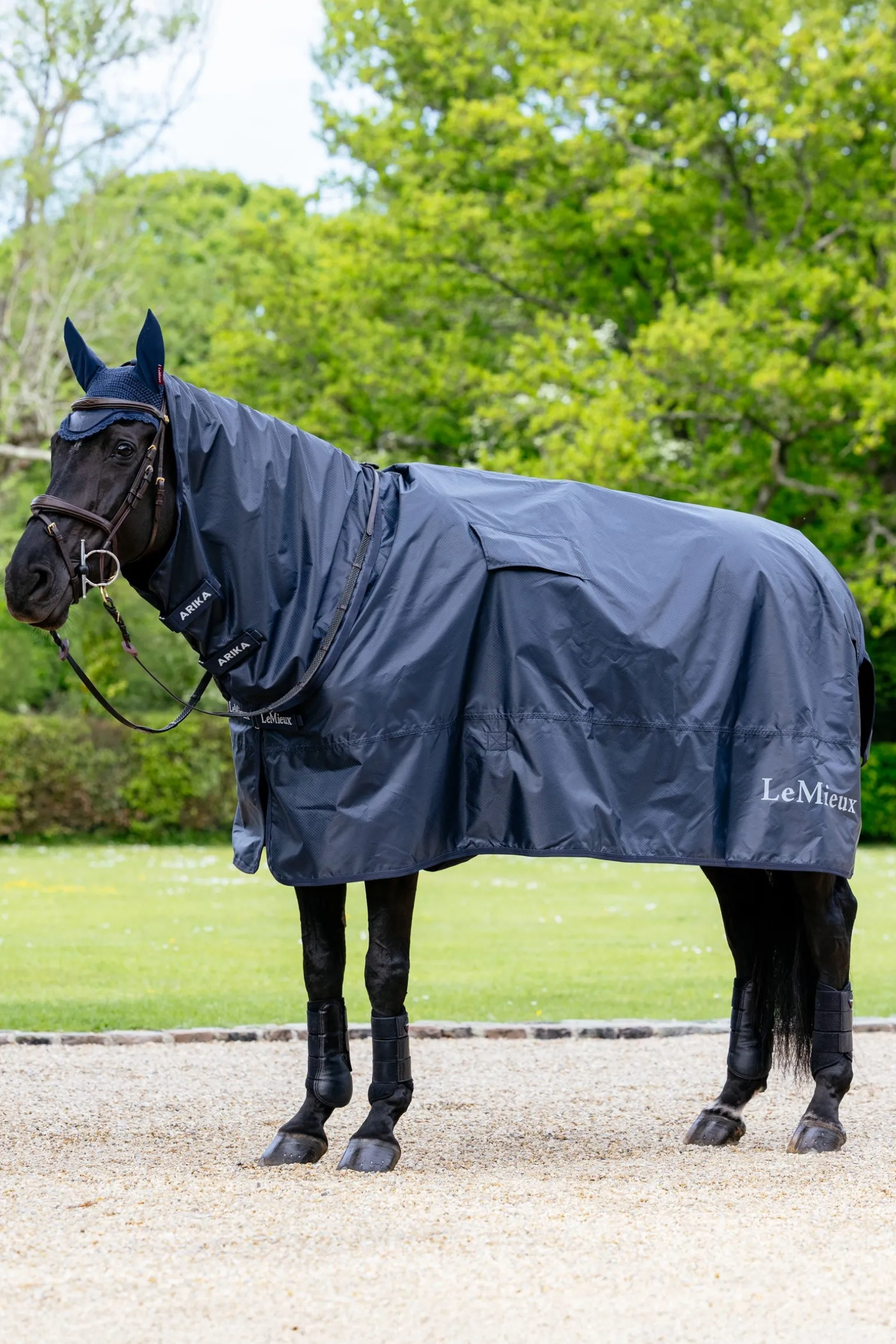 Reite bei jedem Wetter mit dieser praktischen Reitdecke. Sie bietet dir und deinem Pferd vollständigen Schutz – mit einer Wassersäule von 3000 mm, fest integriertem Halsteil und Schweiflatz. Eine weiche Schweifkordel verhindert das Flattern der Decke. Die großzügige Schnittform, ein einzelner Bauchgurt und Steigbügelschlitze sorgen für einen sicheren Sitz über dem Sattelzeug und schützen sowohl deine Ausrüstung als auch dein Pferd. Reflektierende LeMieux-Logos und Details erhöhen die Sichtbarkeit bei schlechten Lichtverhältnissen.